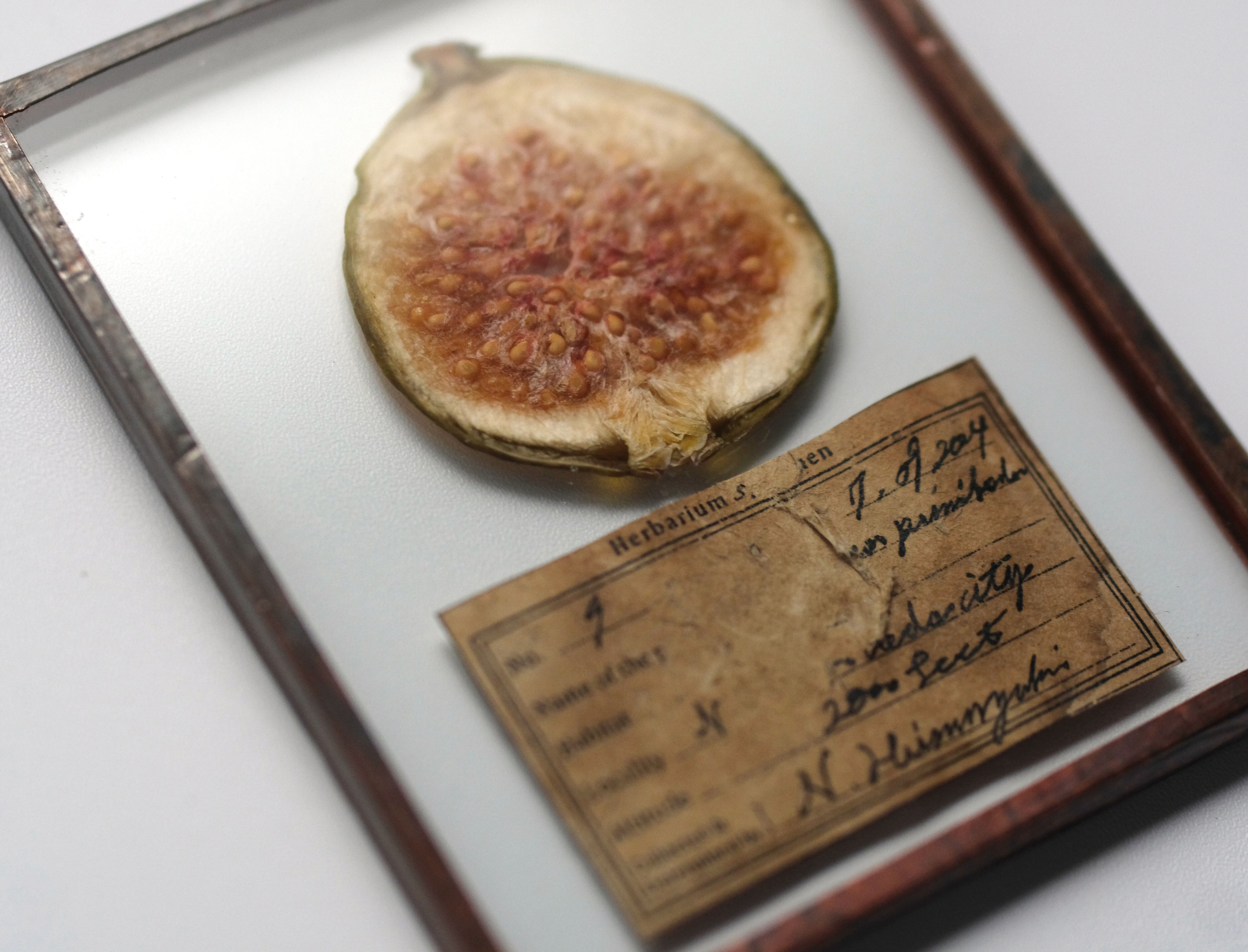 秋の実りをイメージして果実や青果のガラス標本を製作しました。