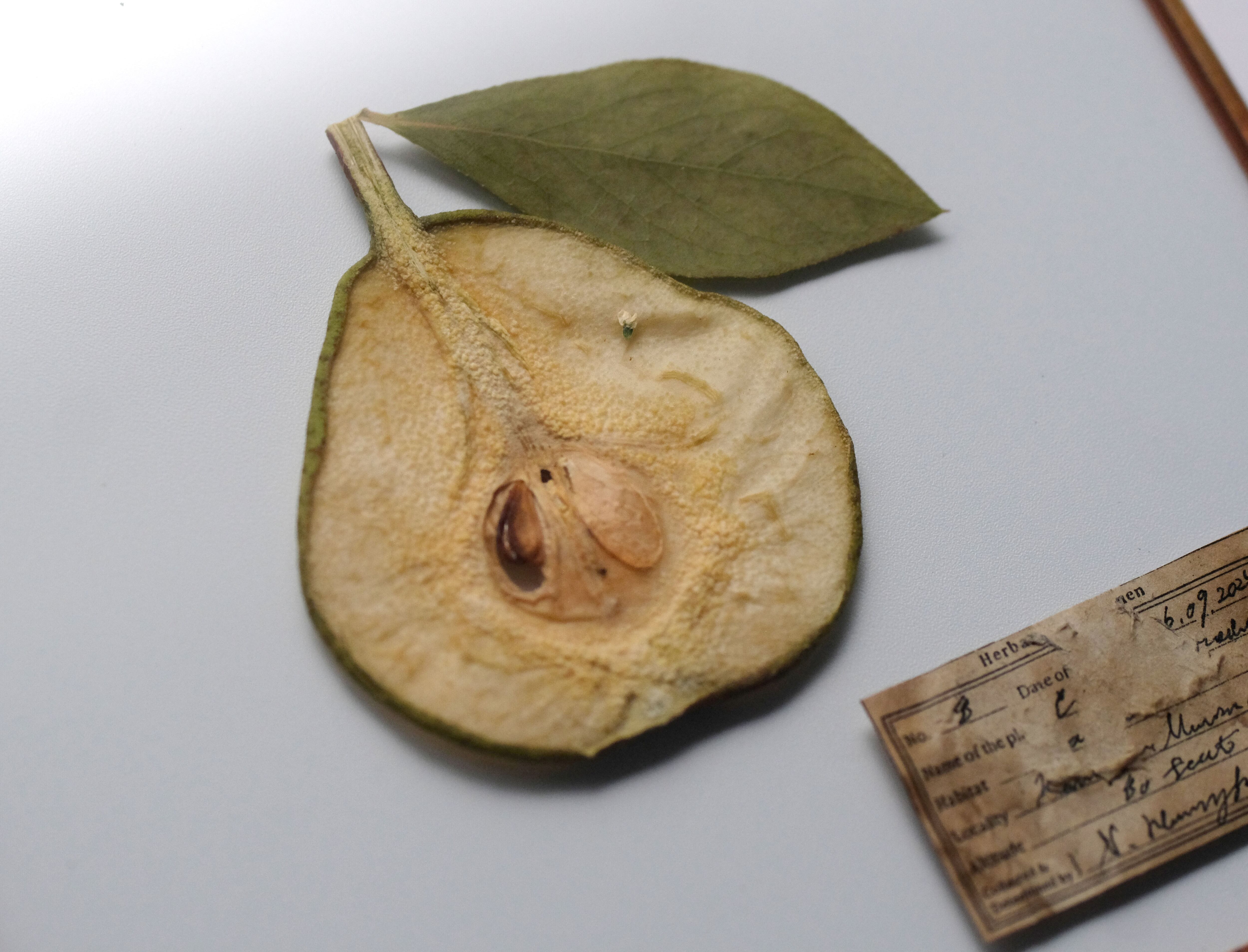 秋の実りをイメージして果実や青果のガラス標本を製作しました。