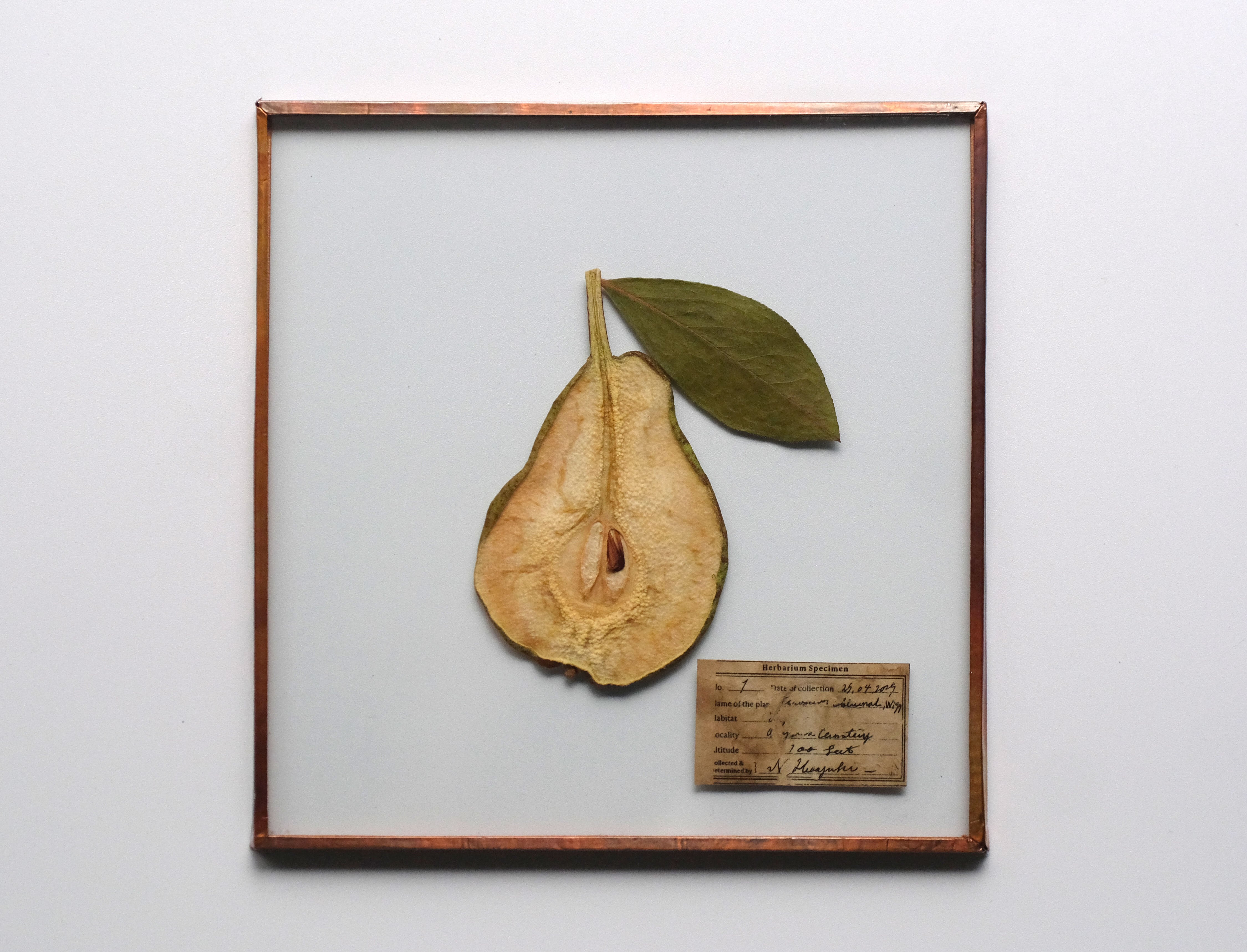 秋の実りをイメージして果実や青果のガラス標本を製作しました。
