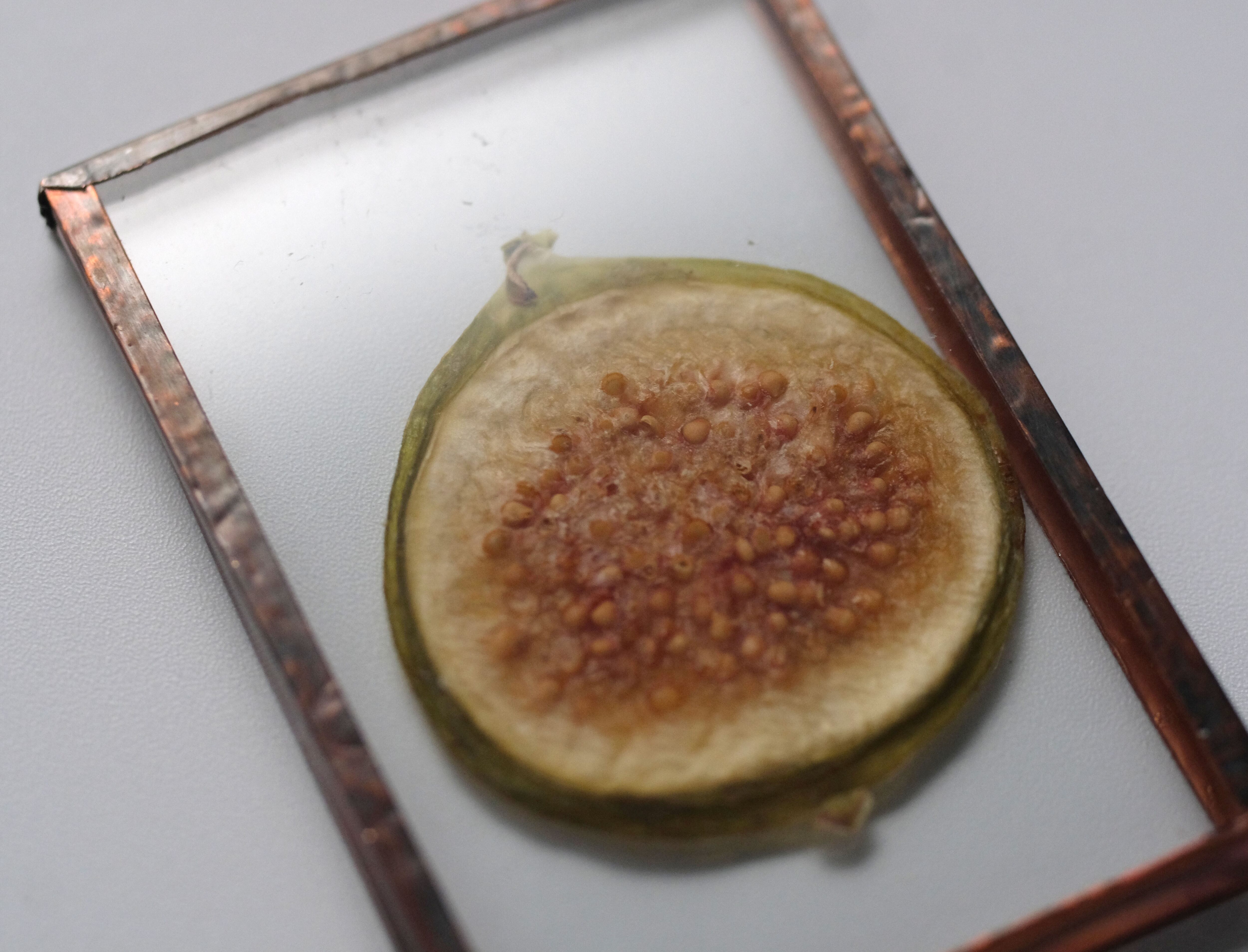 秋の実りをイメージして果実や青果のガラス標本を製作しました。