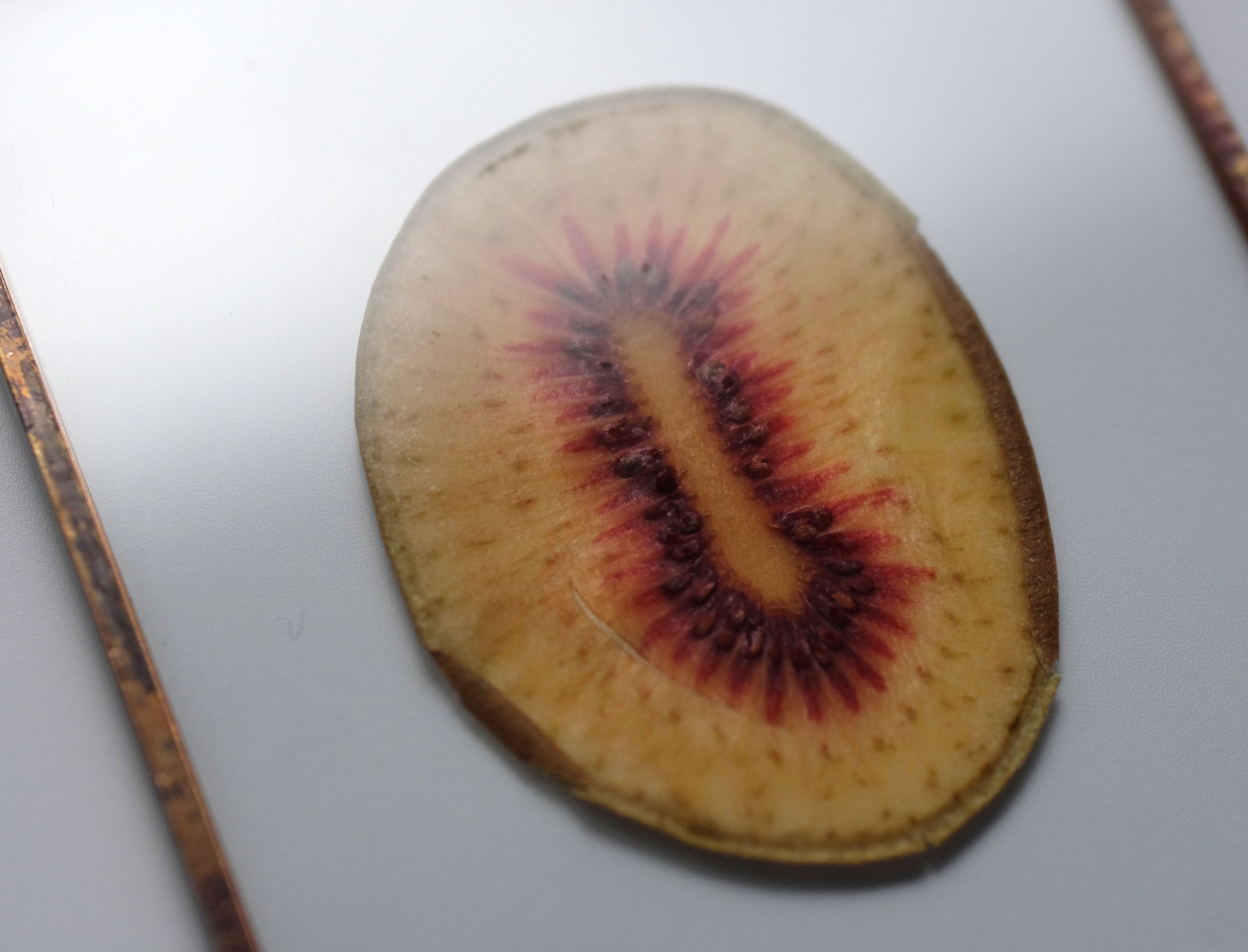 秋の実りをイメージして果実や青果のガラス標本を製作しました。