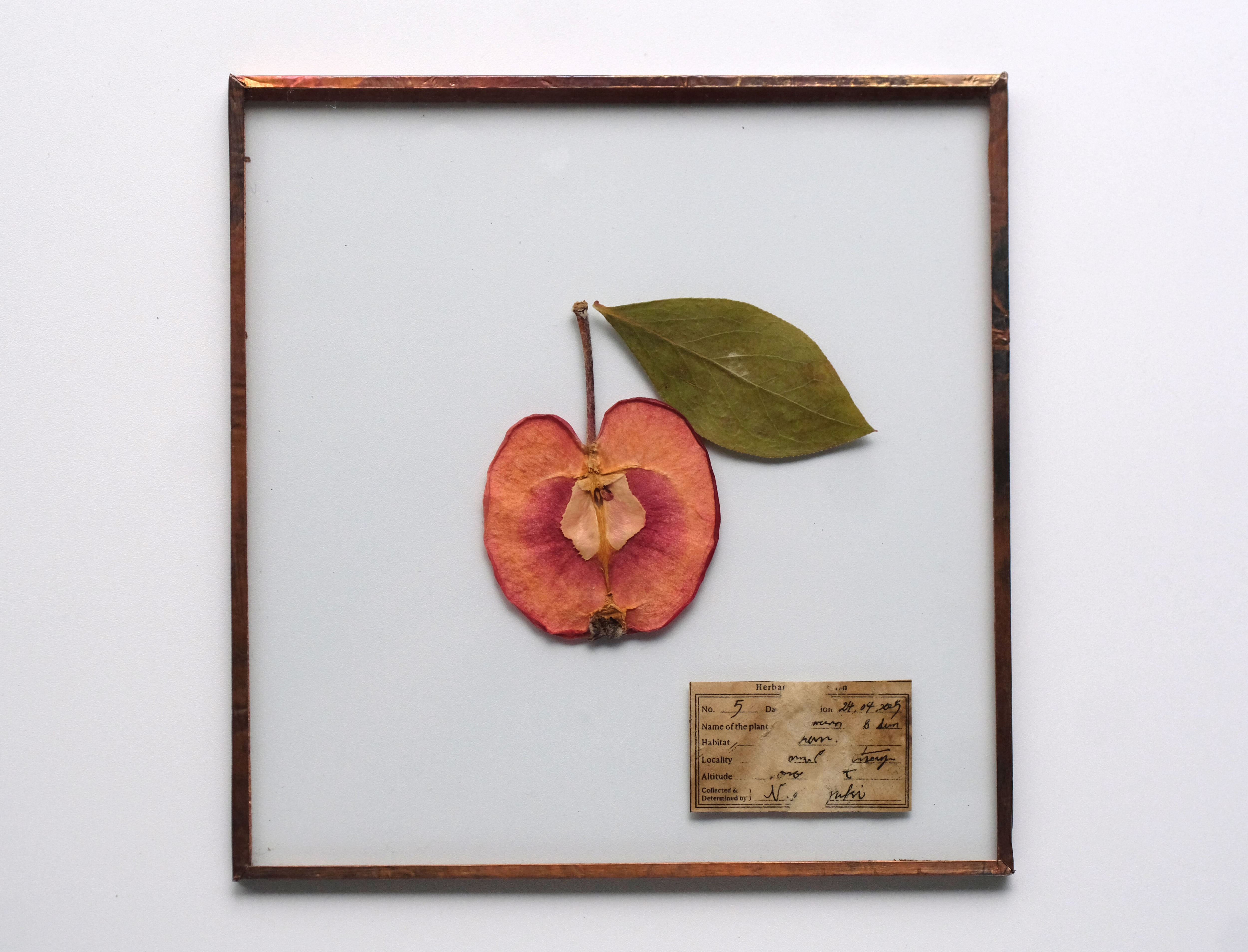 秋の実りをイメージして果実や青果のガラス標本を製作しました。