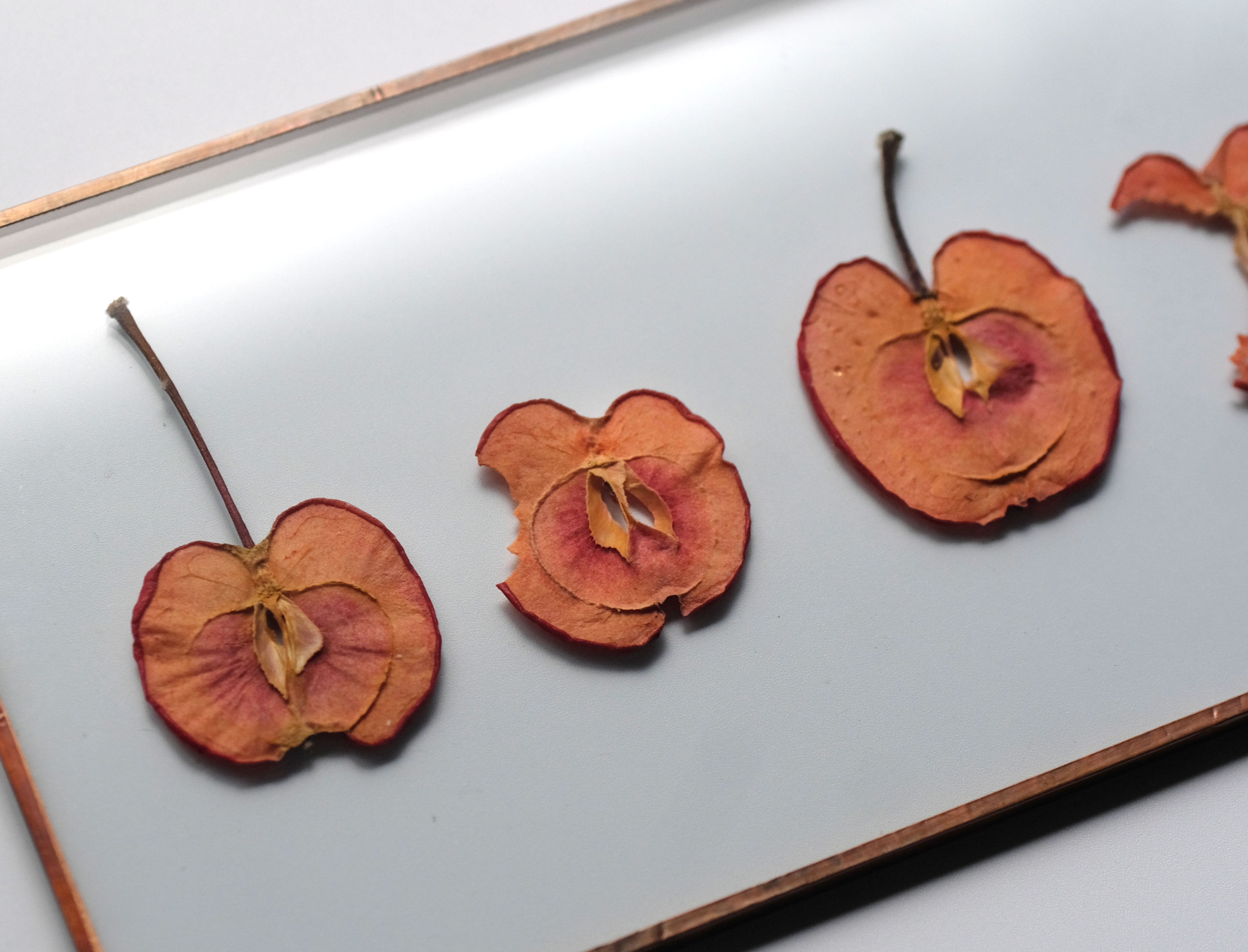 秋の実りをイメージして果実や青果のガラス標本を製作しました。