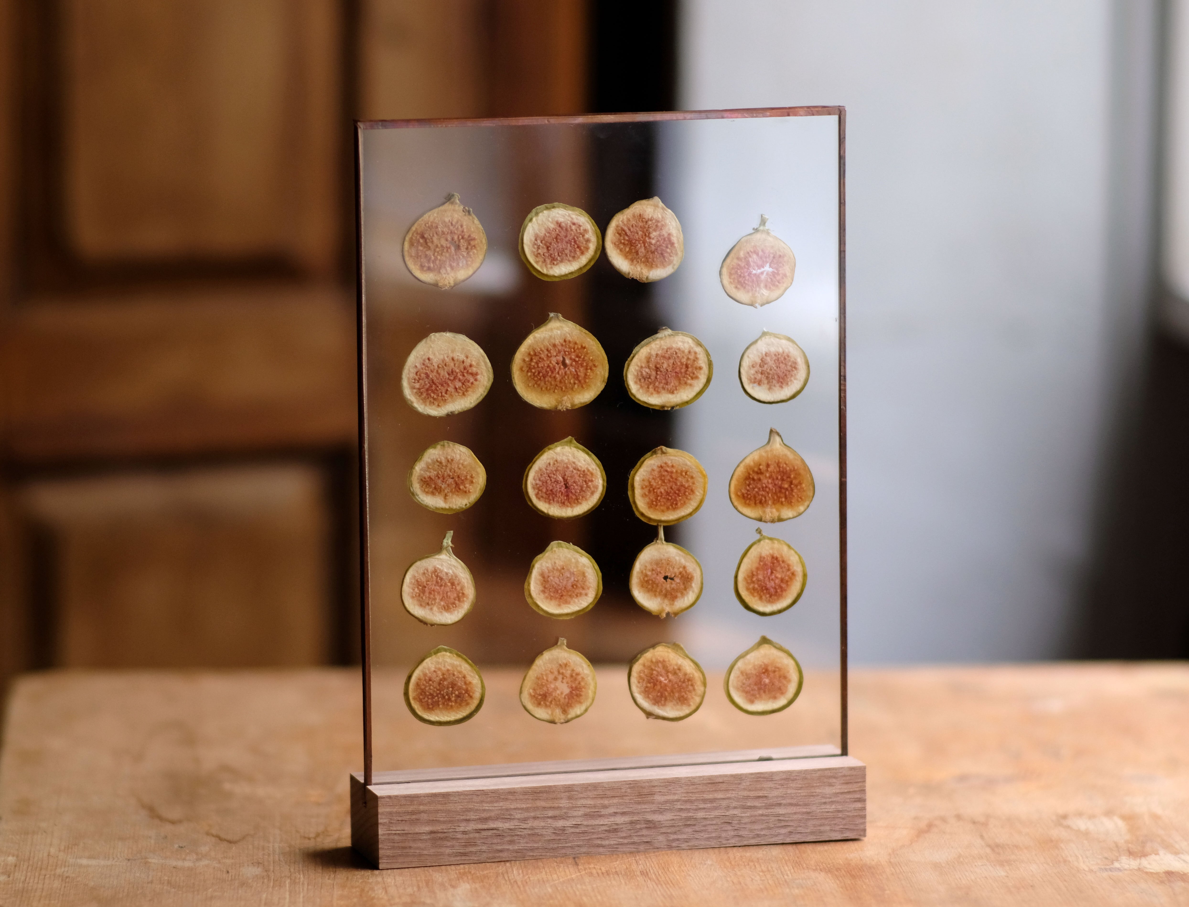 秋の実りをイメージして果実や青果のガラス標本を製作しました。