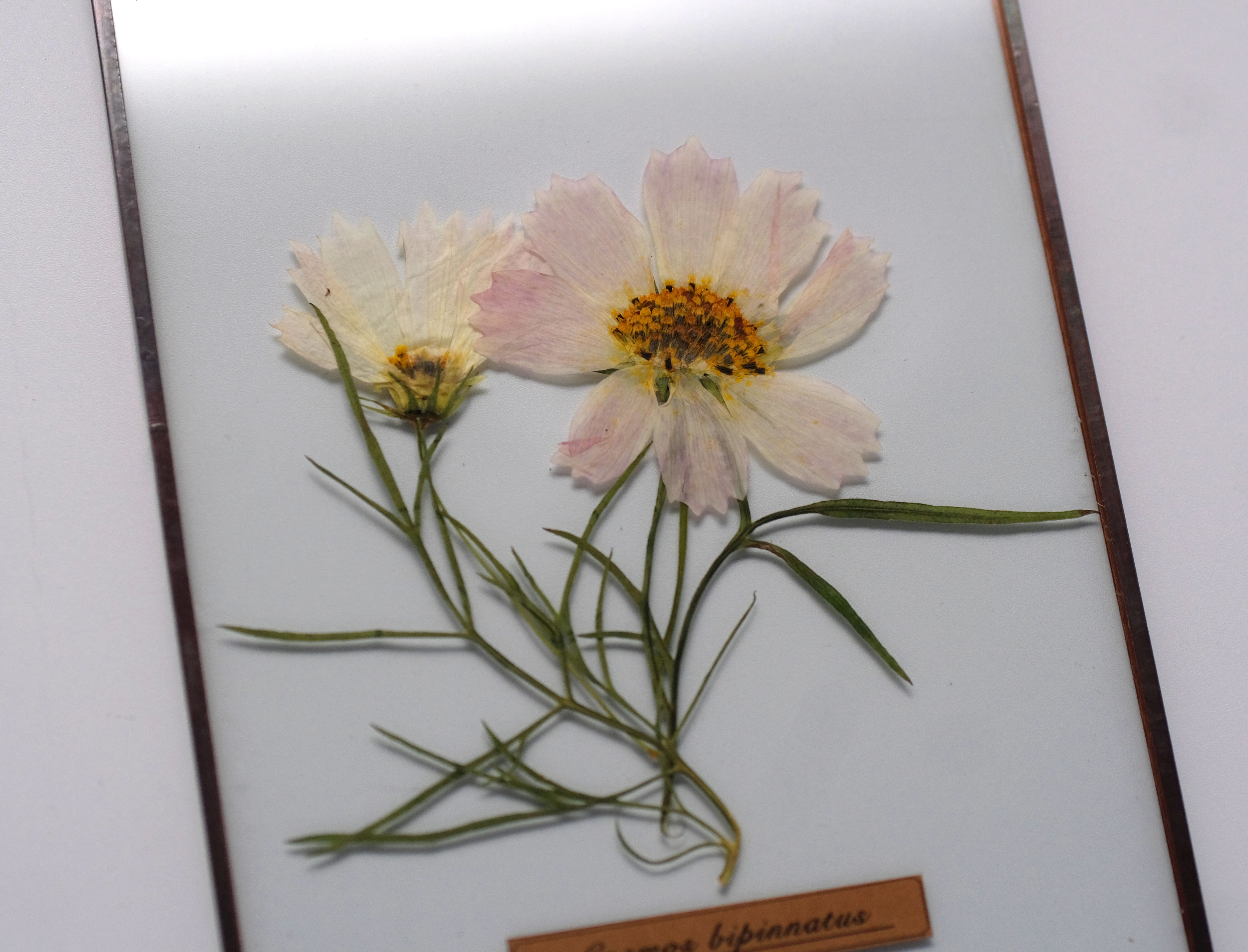 様々な秋桜をゆっくりと時間を掛けて押してガラスの標本に仕立てました。
