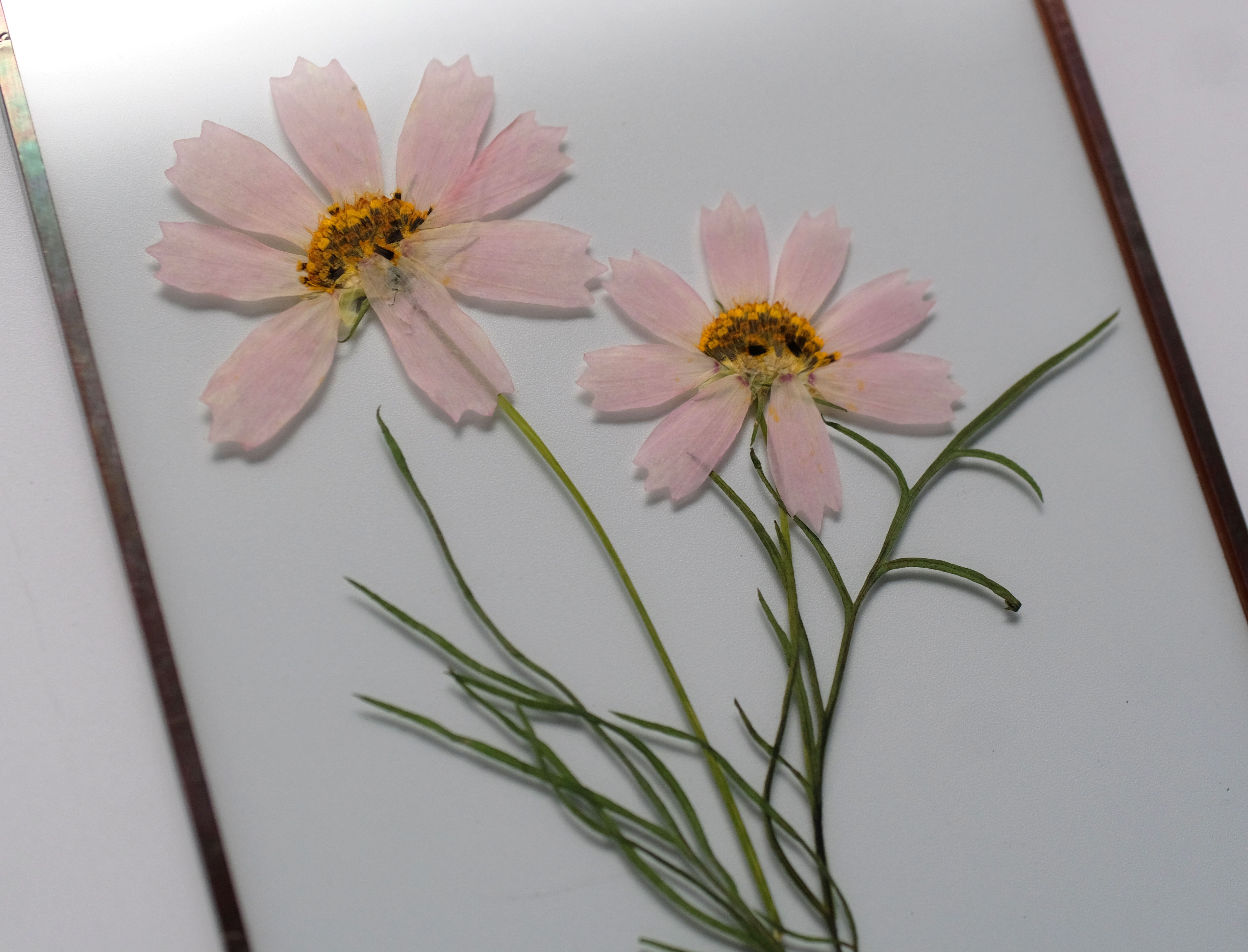様々な秋桜をゆっくりと時間を掛けて押してガラスの標本に仕立てました。