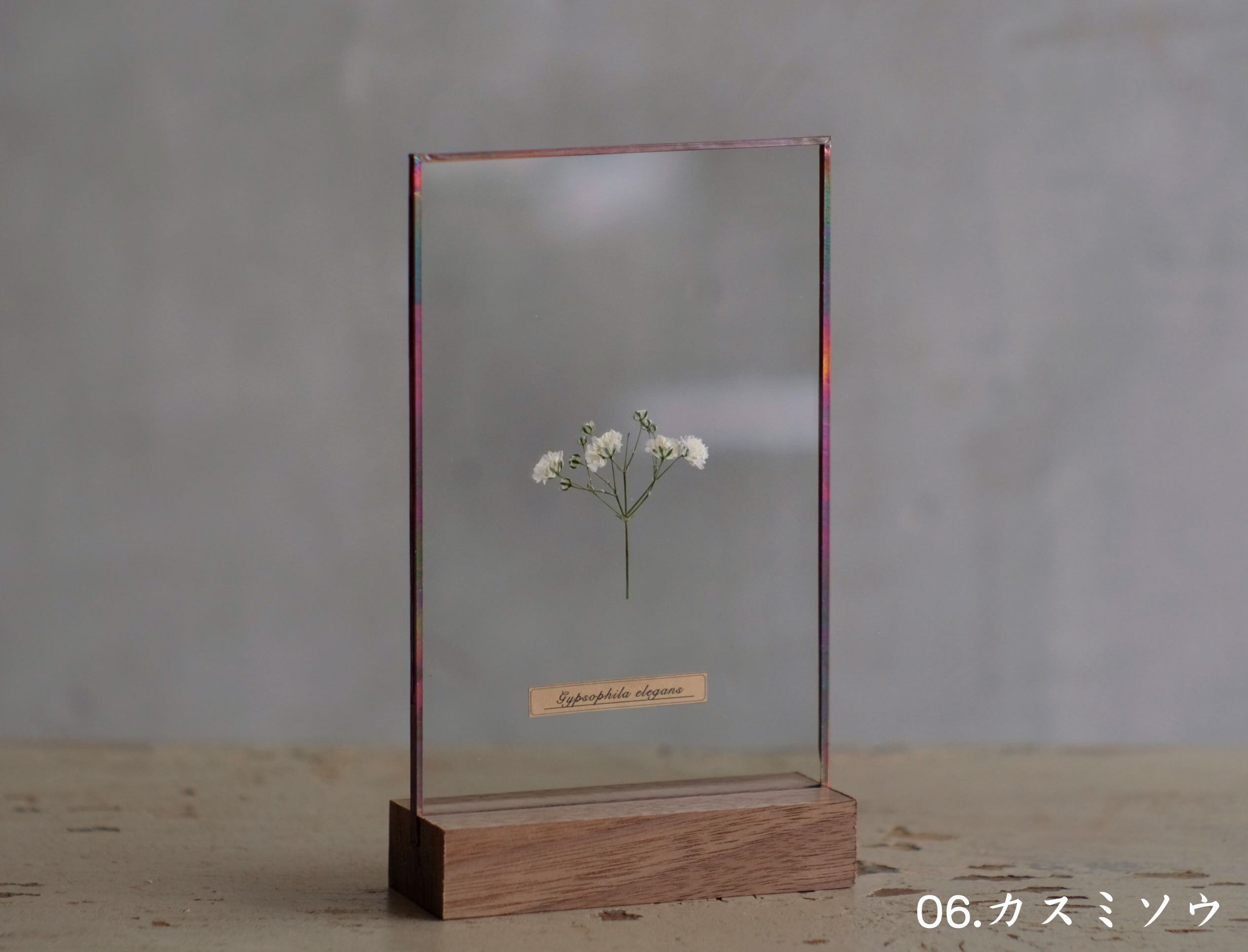 植物に限らず、苔や地衣類、海藻など自然物の一瞬をガラスで綴じた当店定番の作品のひとつです。