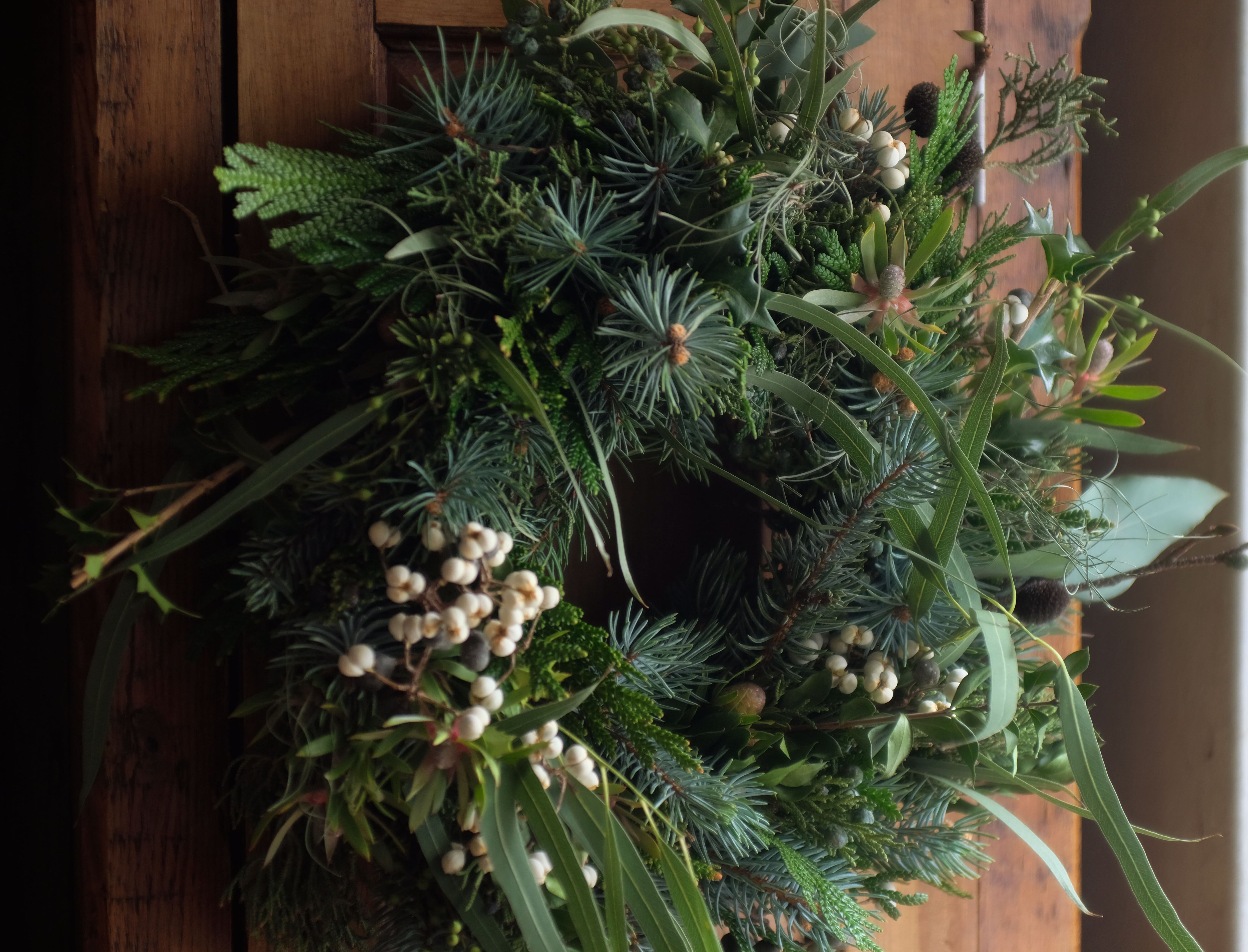 material : 針葉樹(プーゲンス、コニファー、アスナロ、ブルーアイス、ジェニファー)、柊、ユーカリ、ナンキンハゼ、ハンノキ、リューカデンドロン など