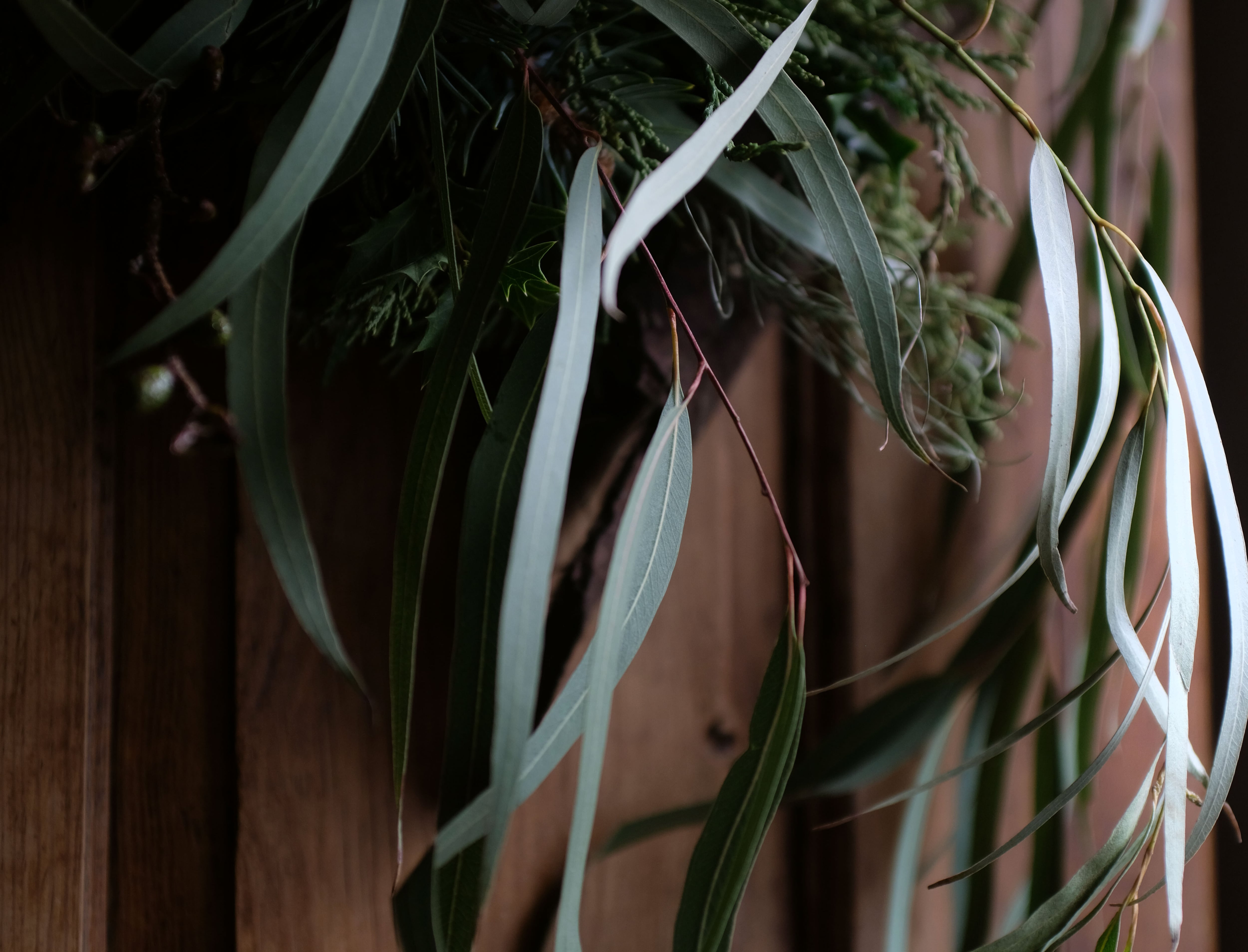 material : 針葉樹(プーゲンス、コニファー、アスナロ、ブルーアイス、ジェニファー)、ユーカリ、樹皮、リューカデンドロン など