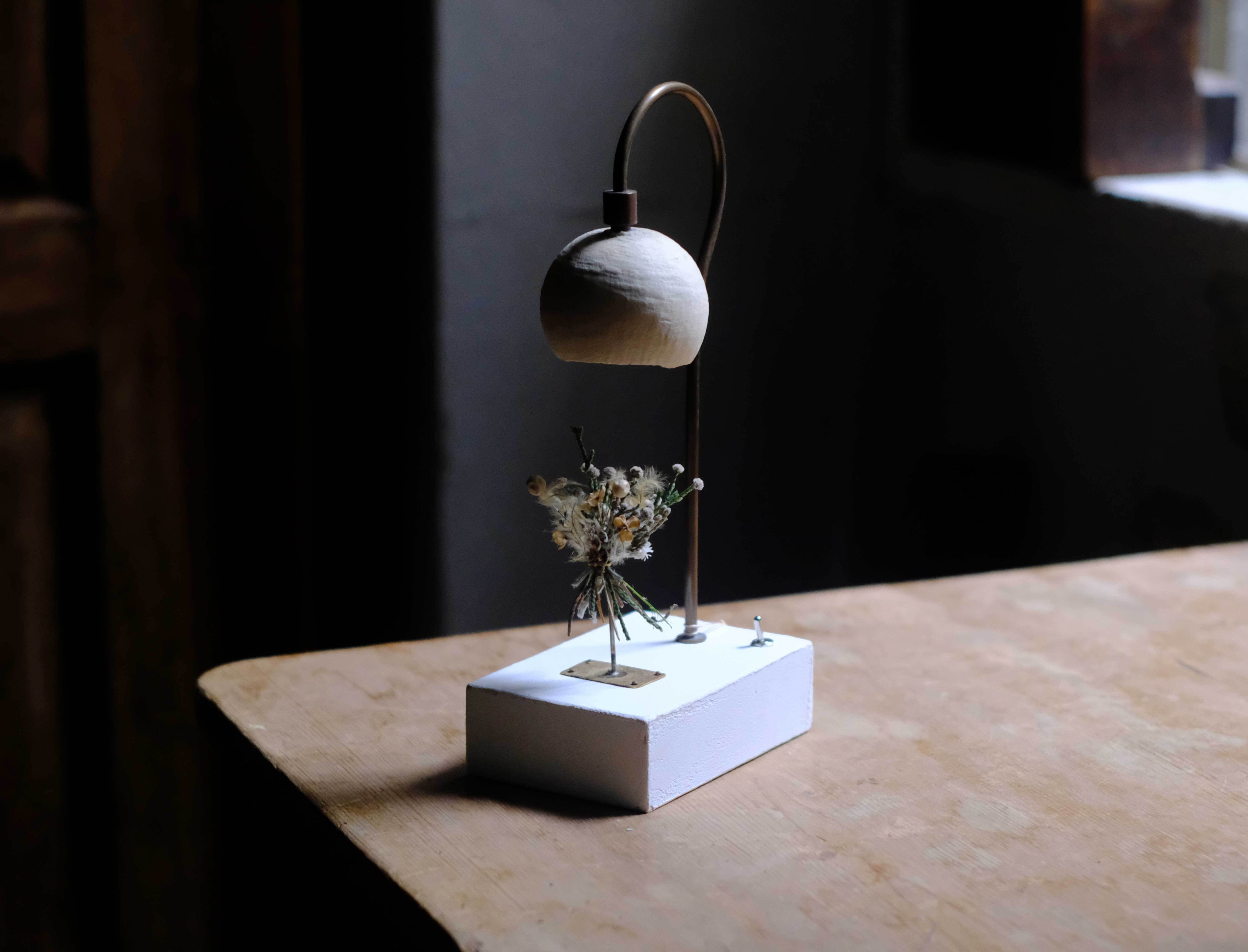 *本作品は単4電池2つで灯る、コードや電源の必要のない灯りの作品です。