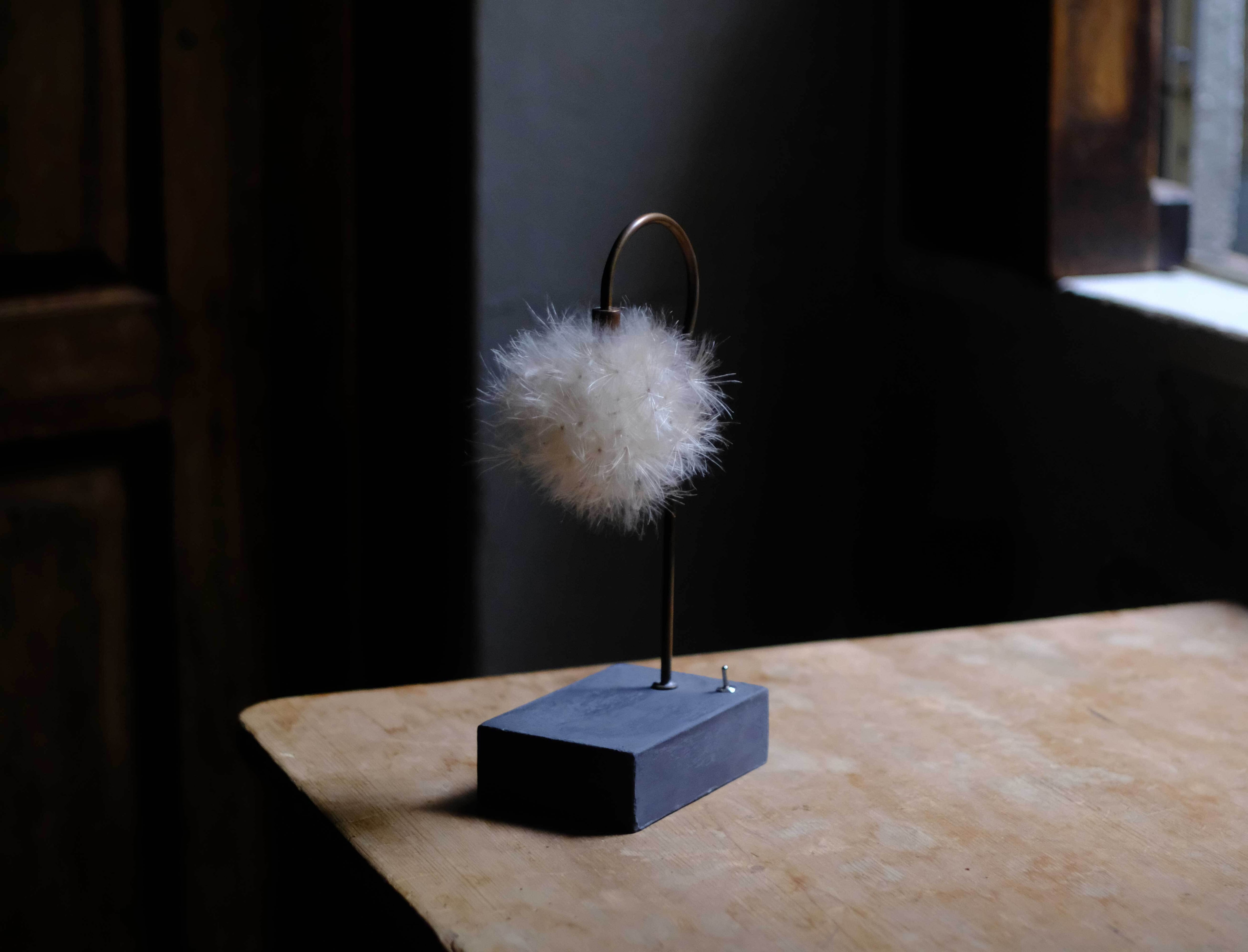 *本作品は単4電池2つで灯る、コードや電源の必要のない灯りの作品です。