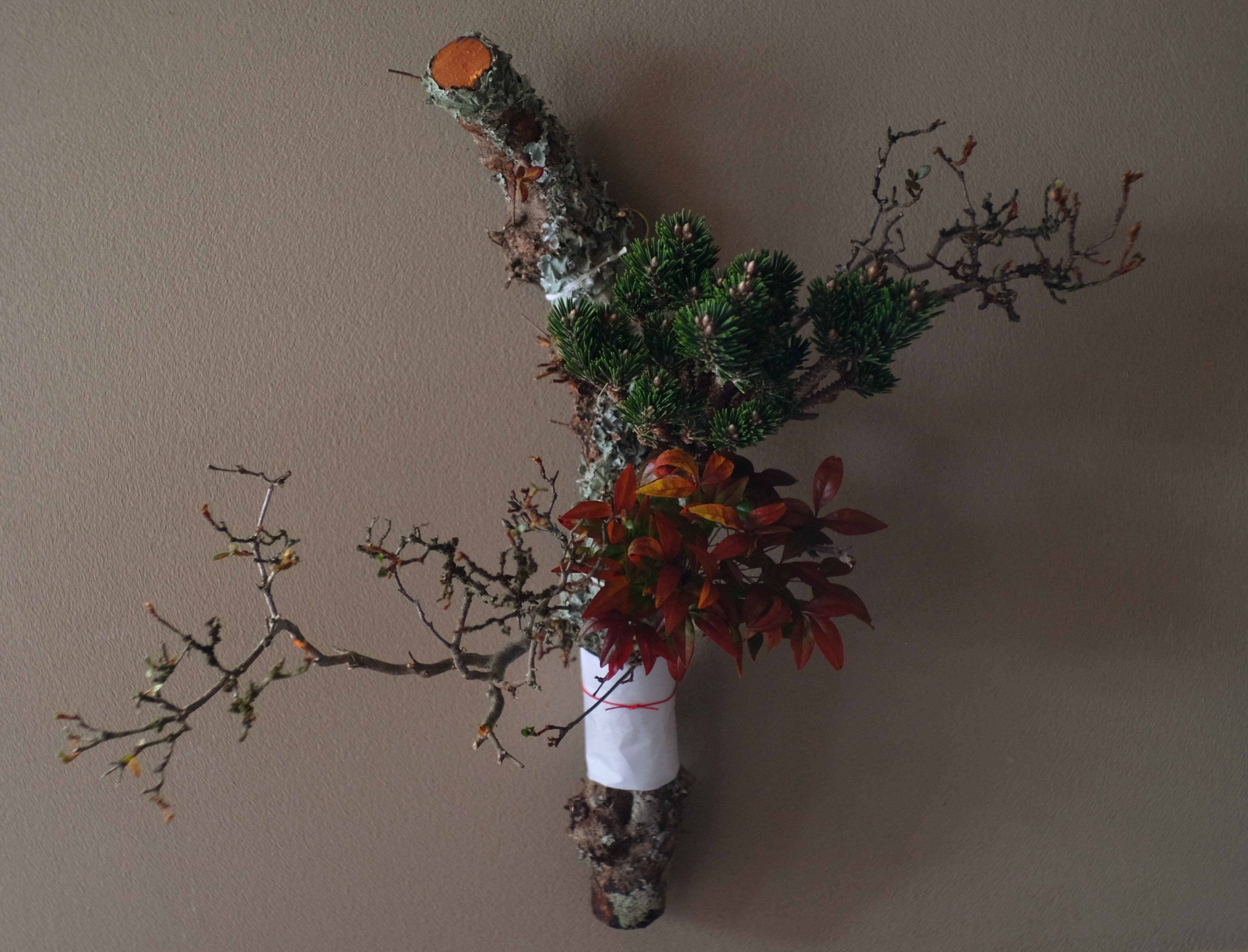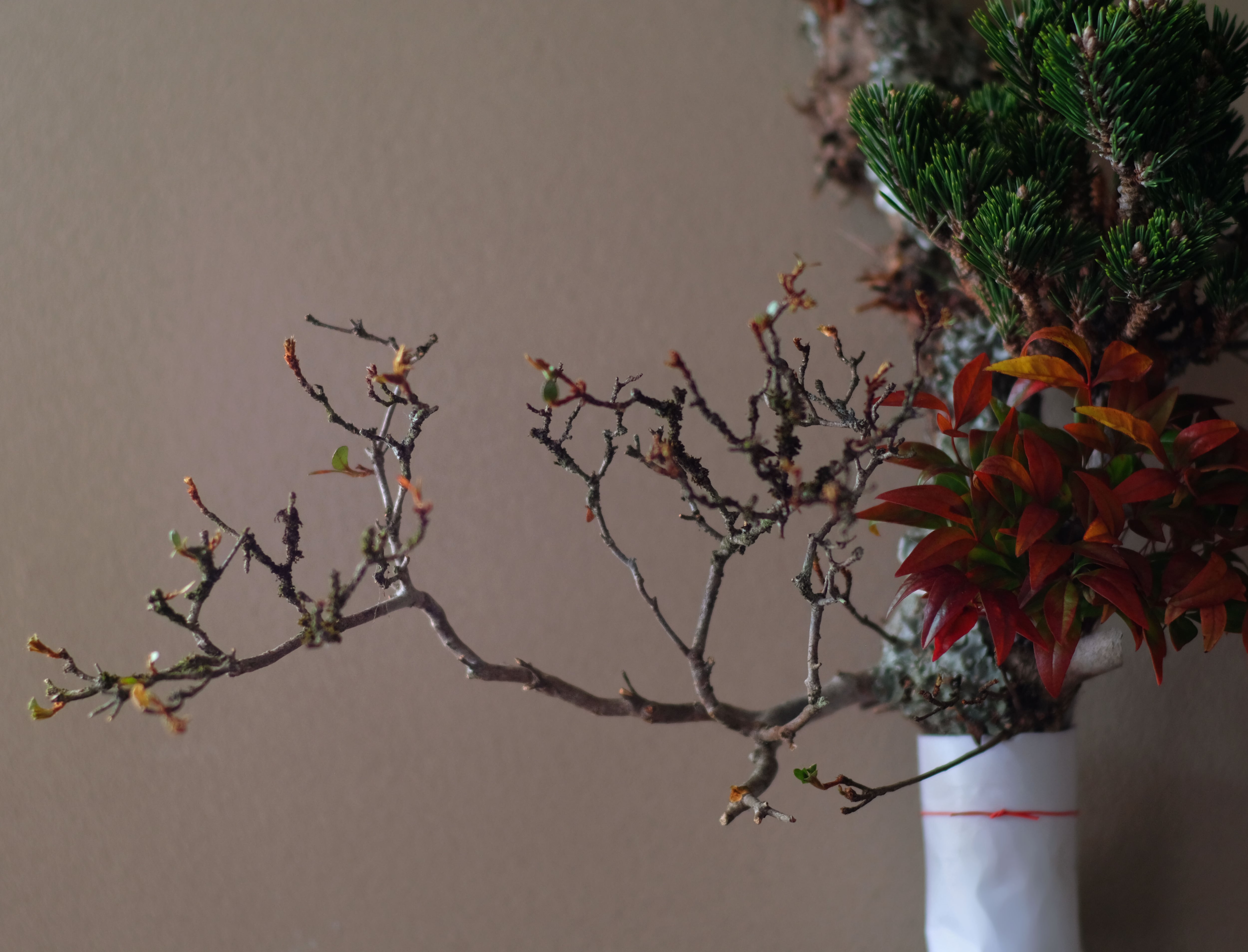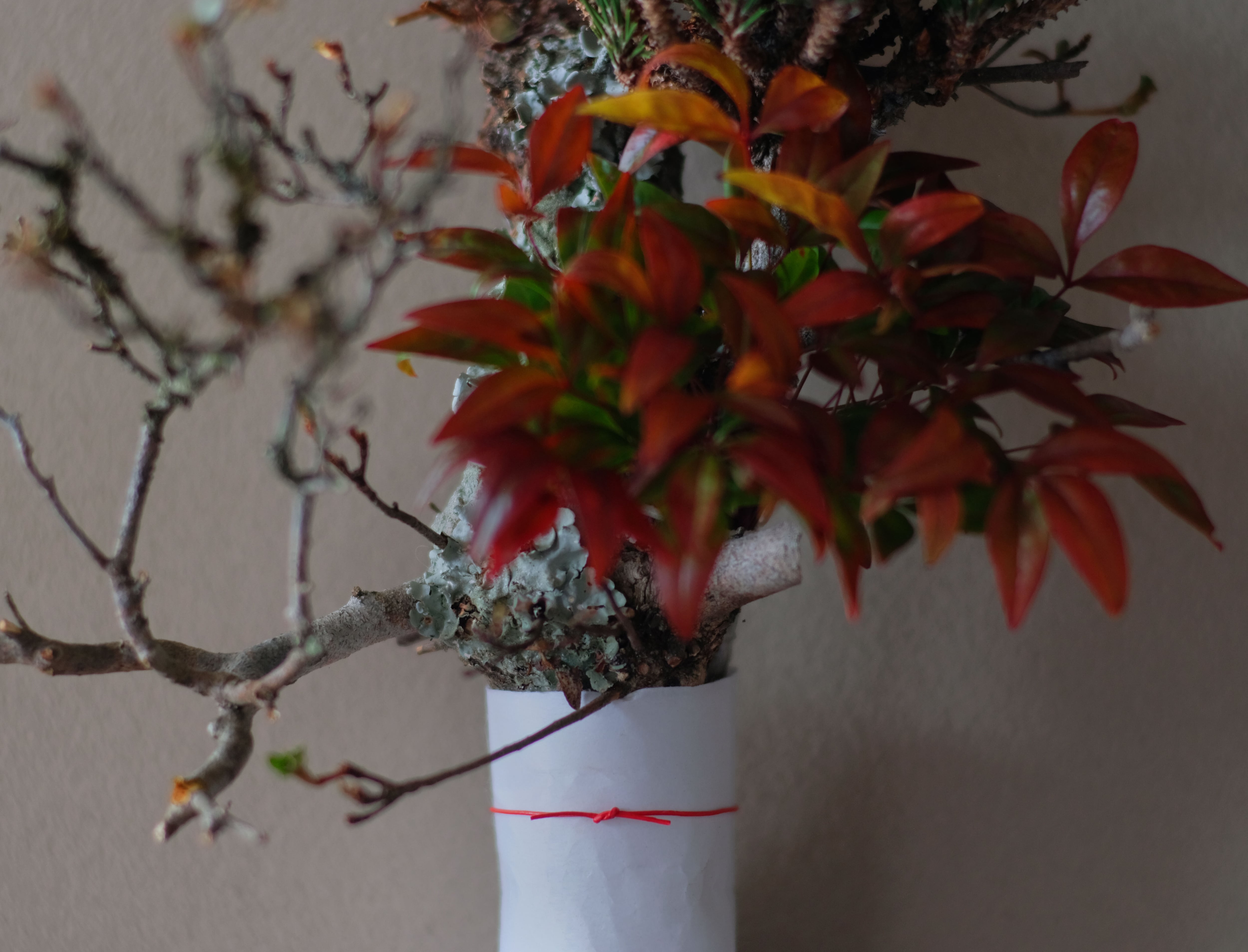 material : 寿松 , 南天 , 苔木 , 和紙 , 水引