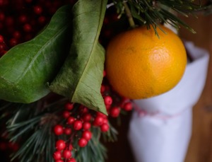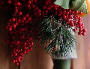 material : 寿松 , 南天 , 蜜柑 , 和紙 , 水引