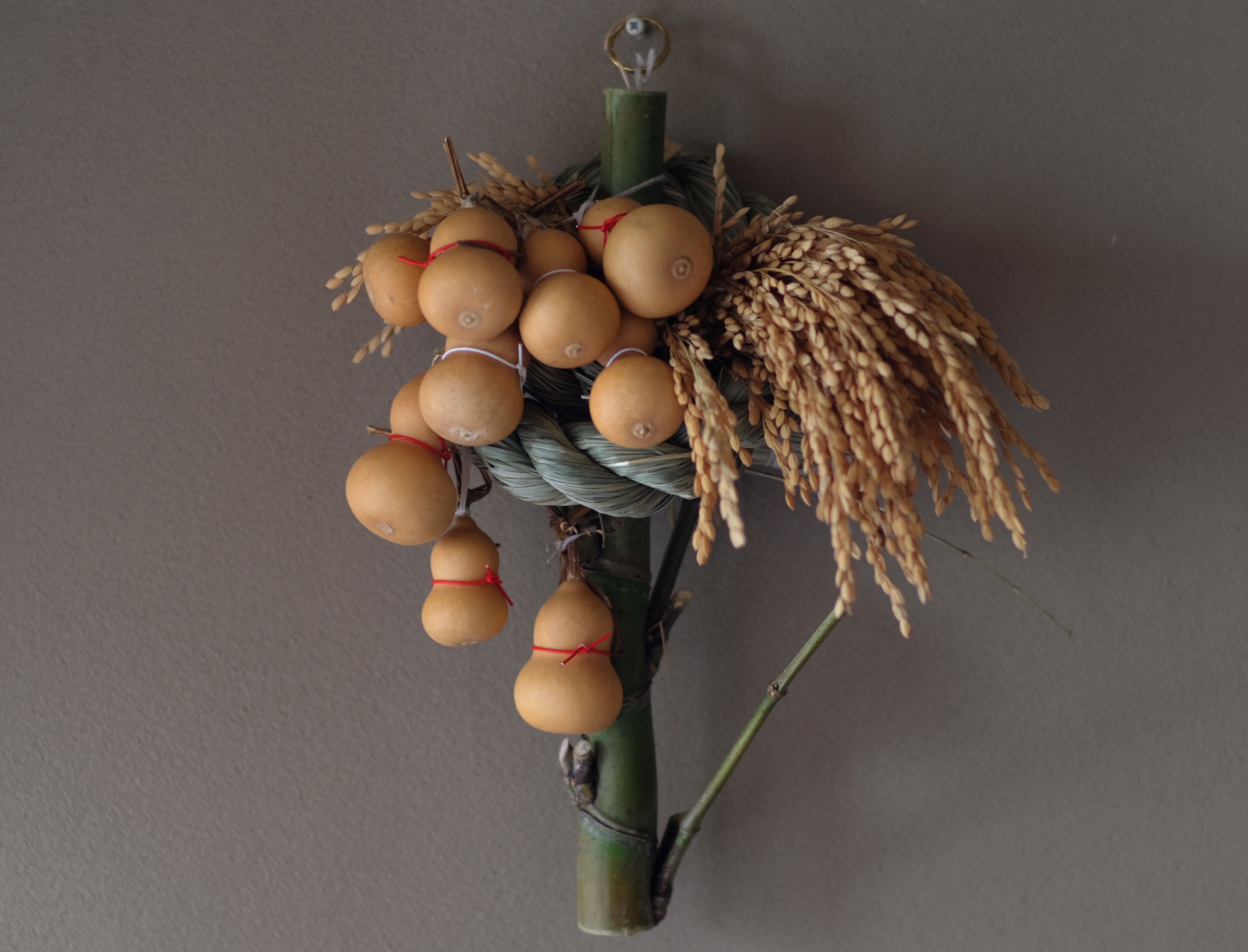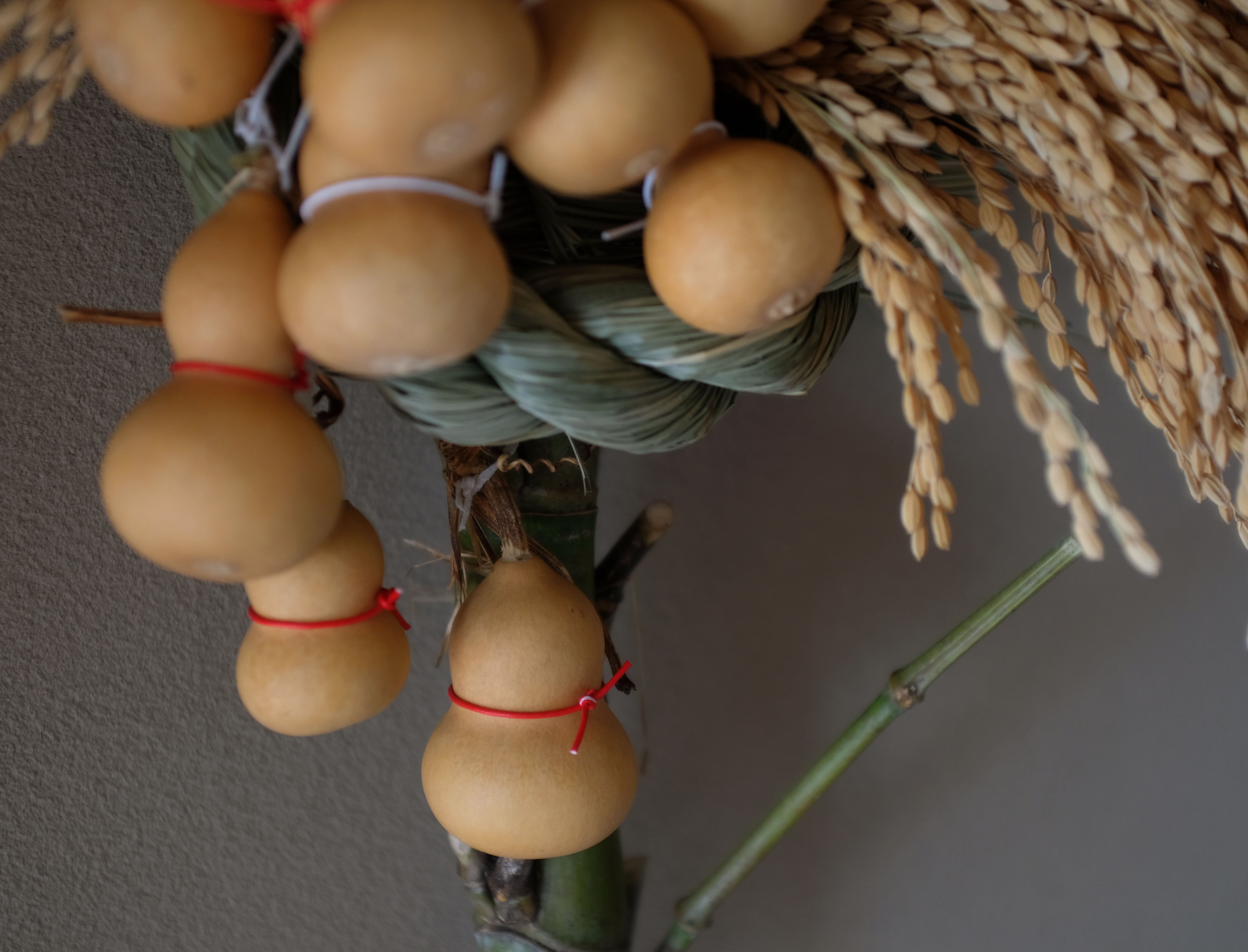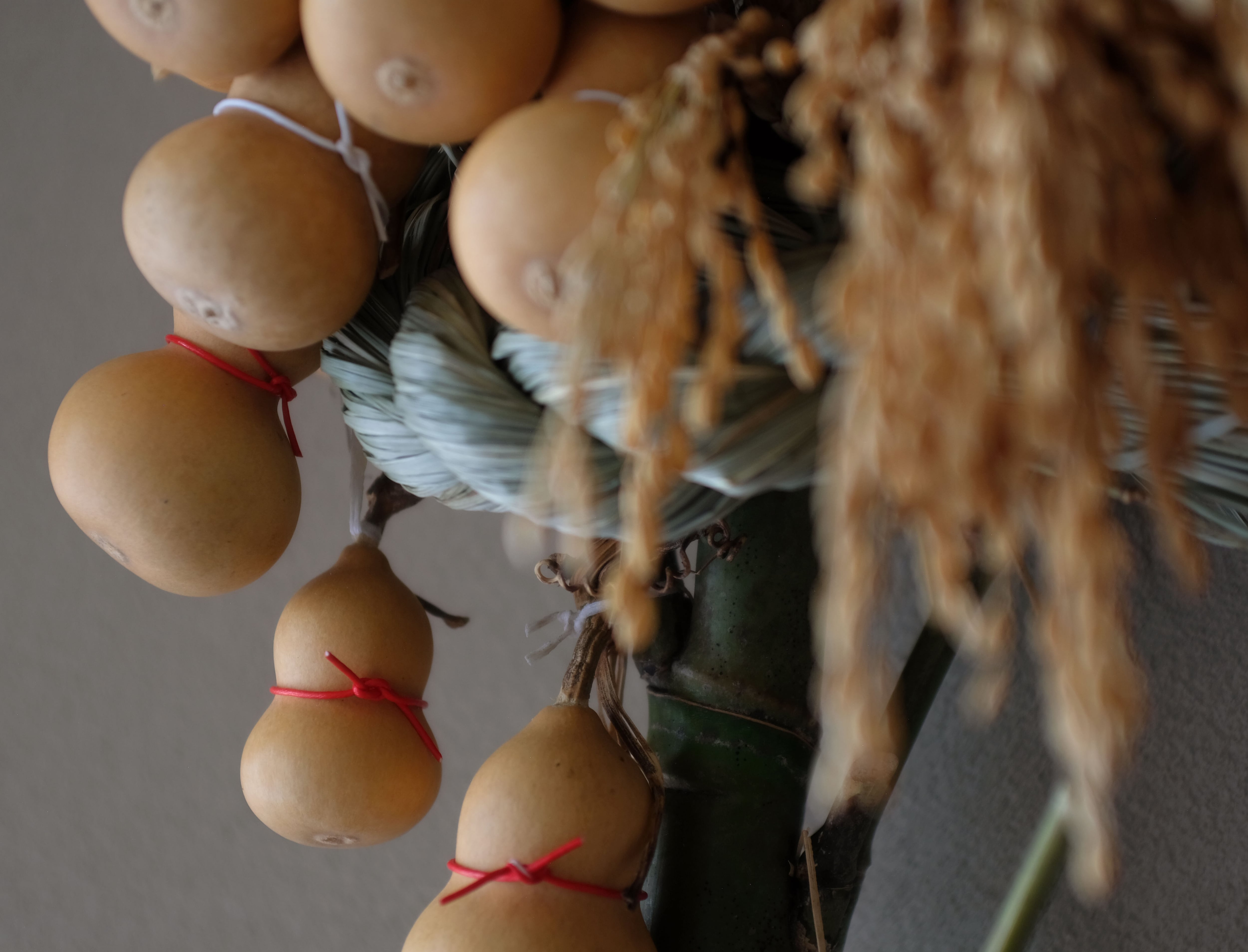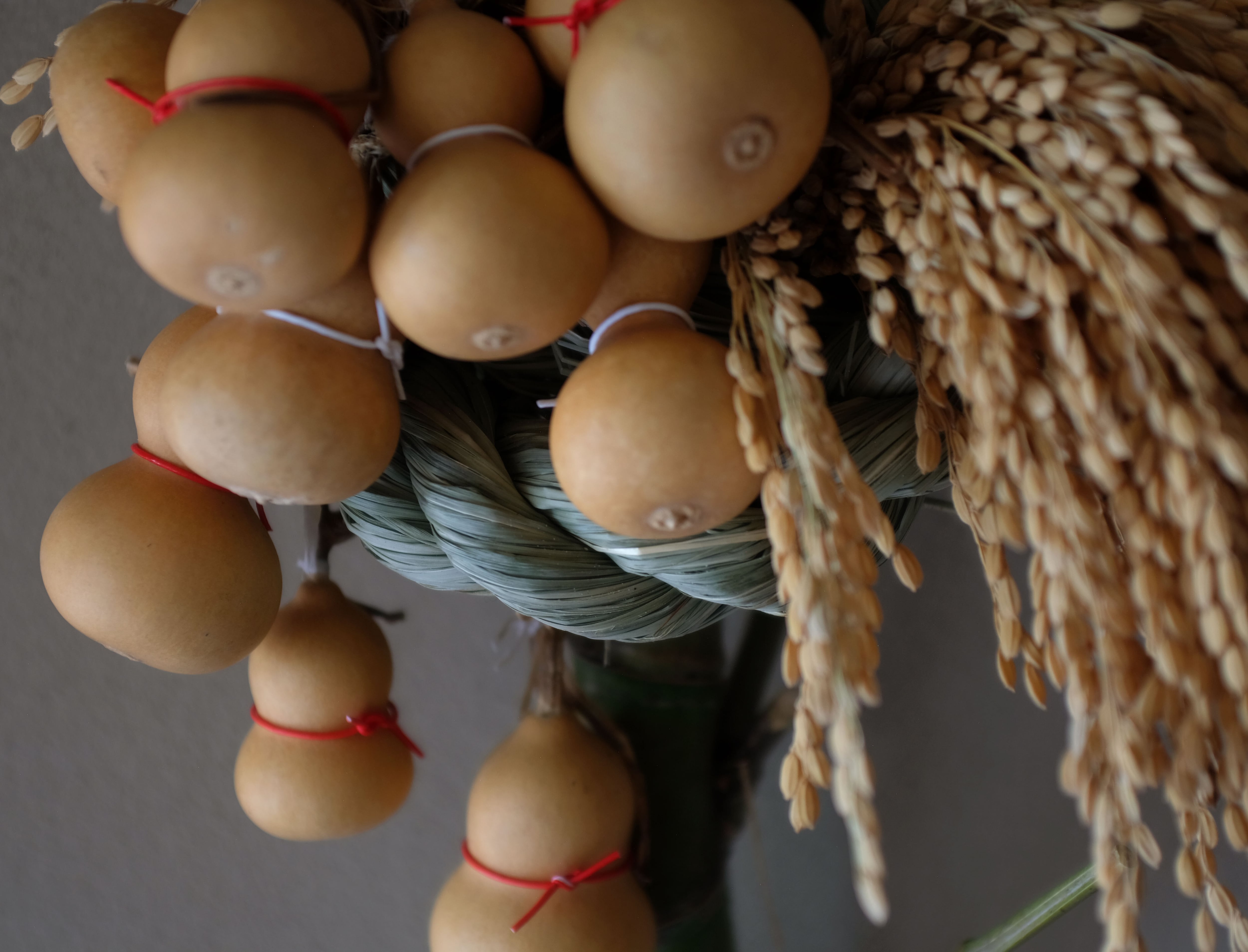material : 注連縄 , 瓢箪 , 稲 , 水引 , 竹
