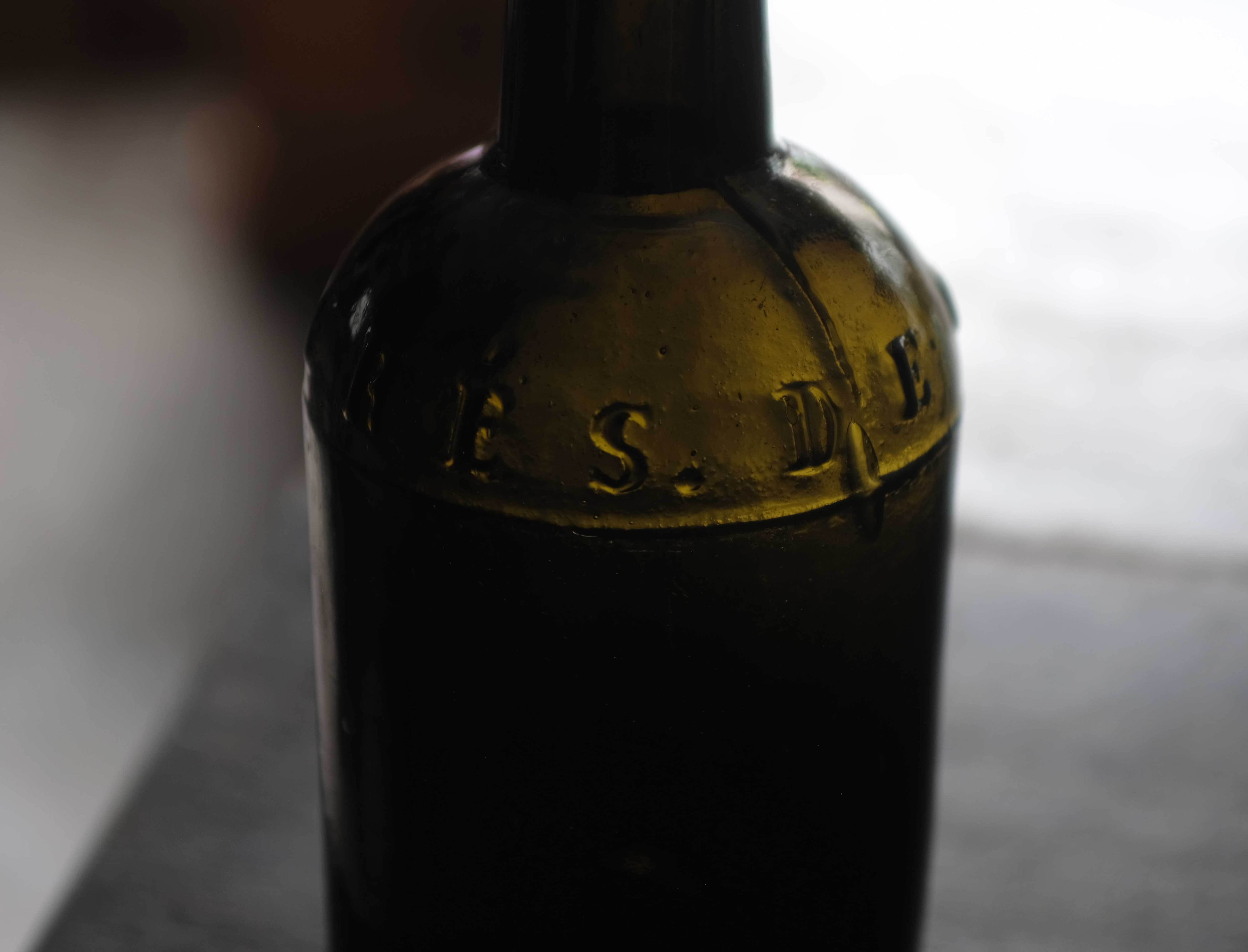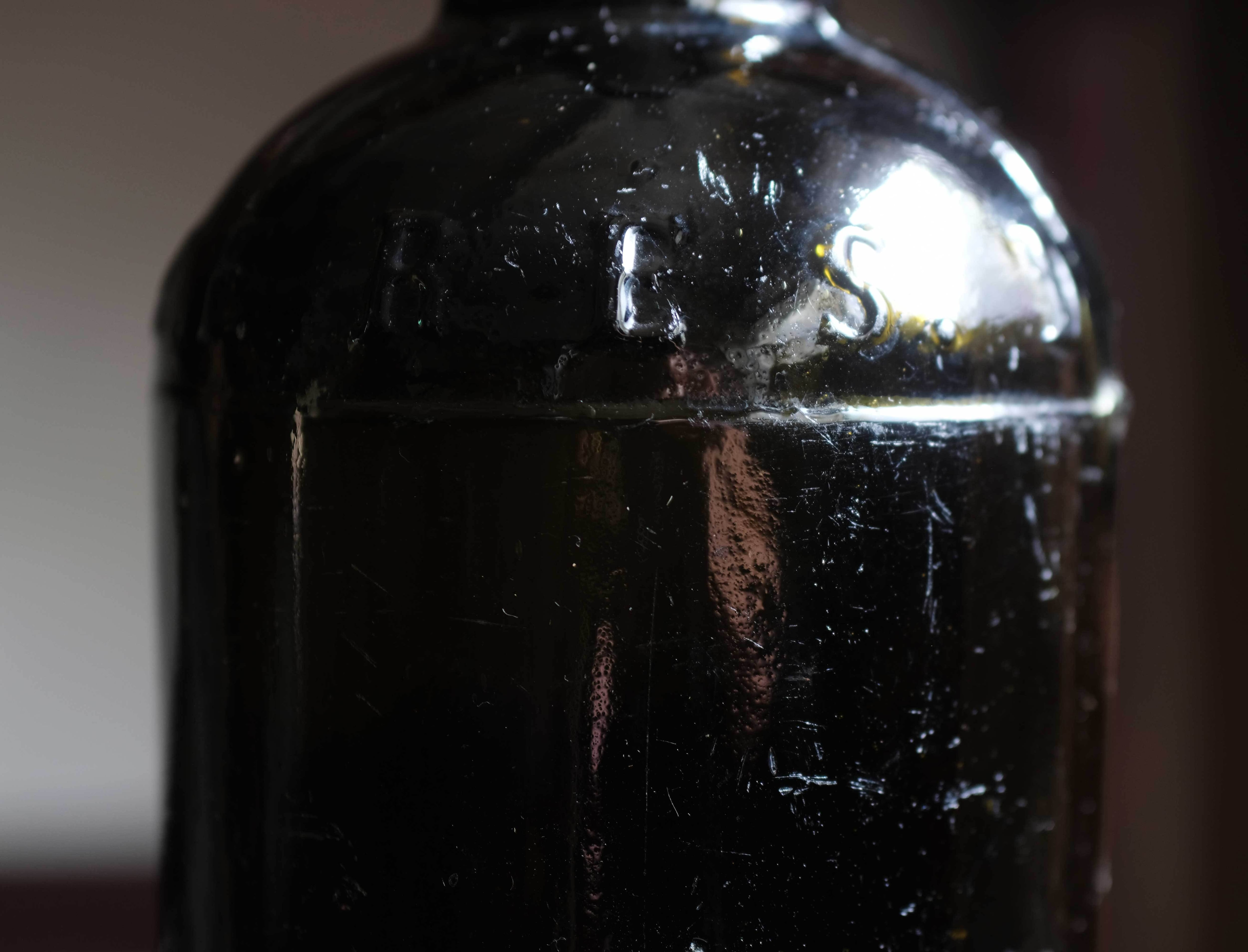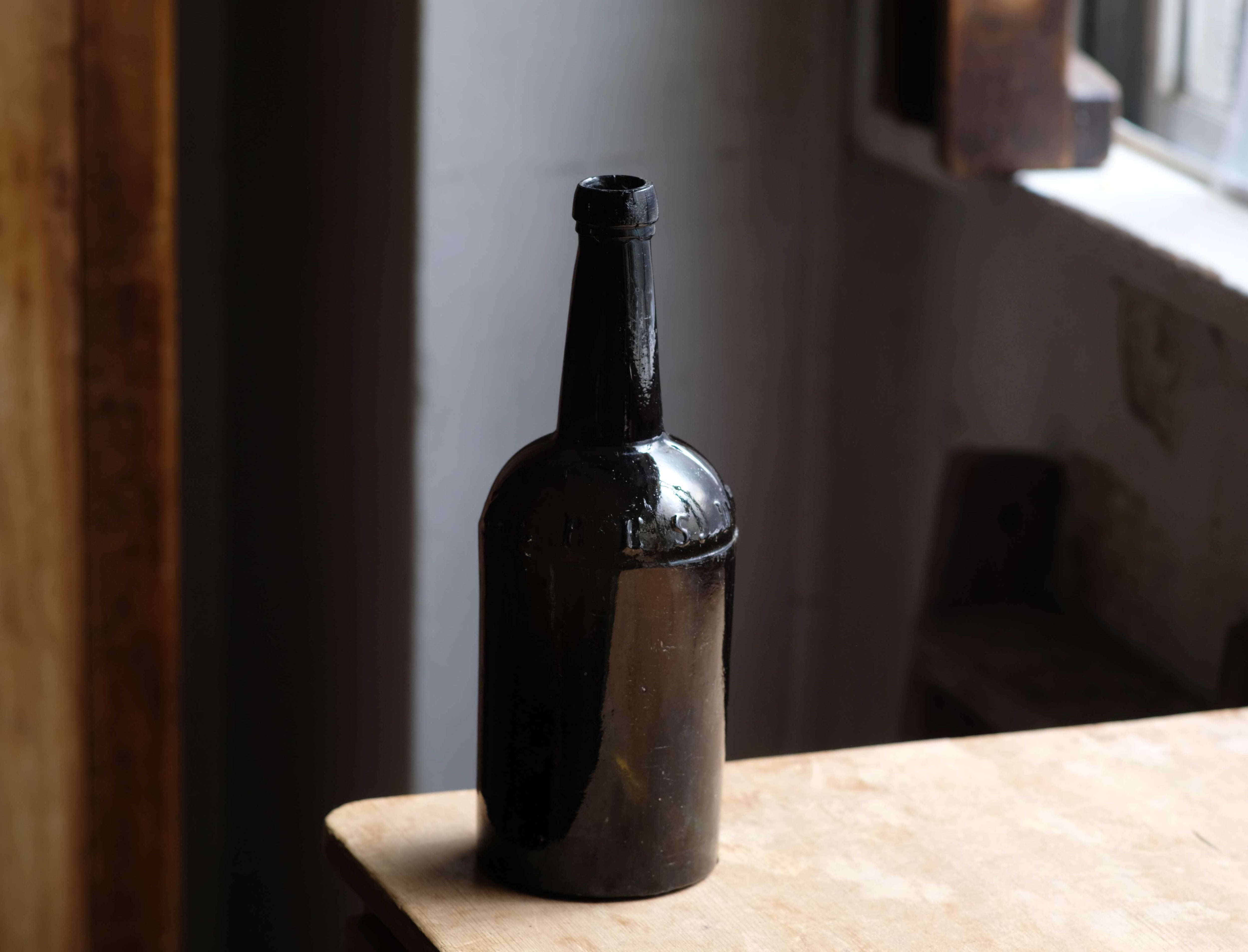 型を使って作られたガラスボトル。