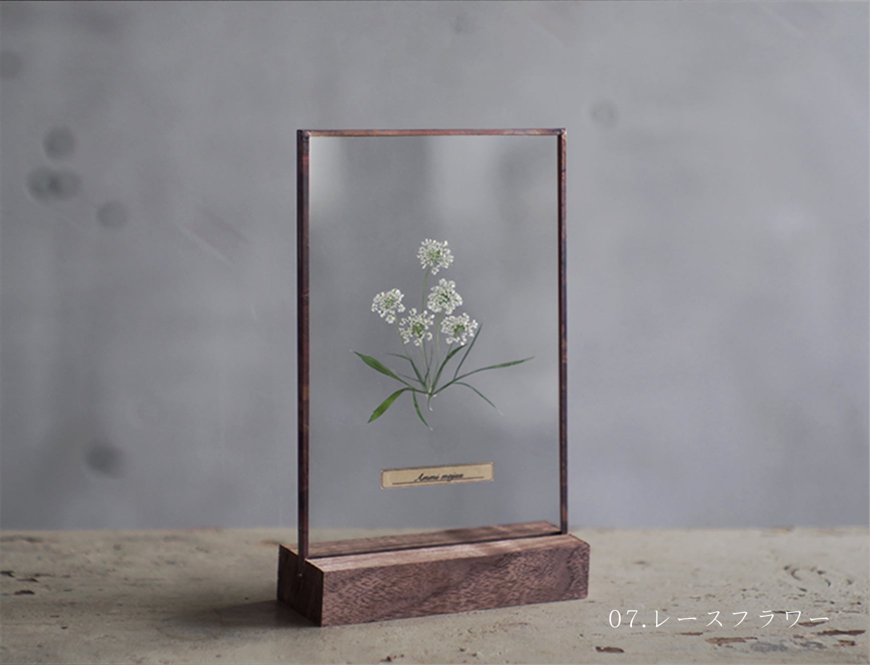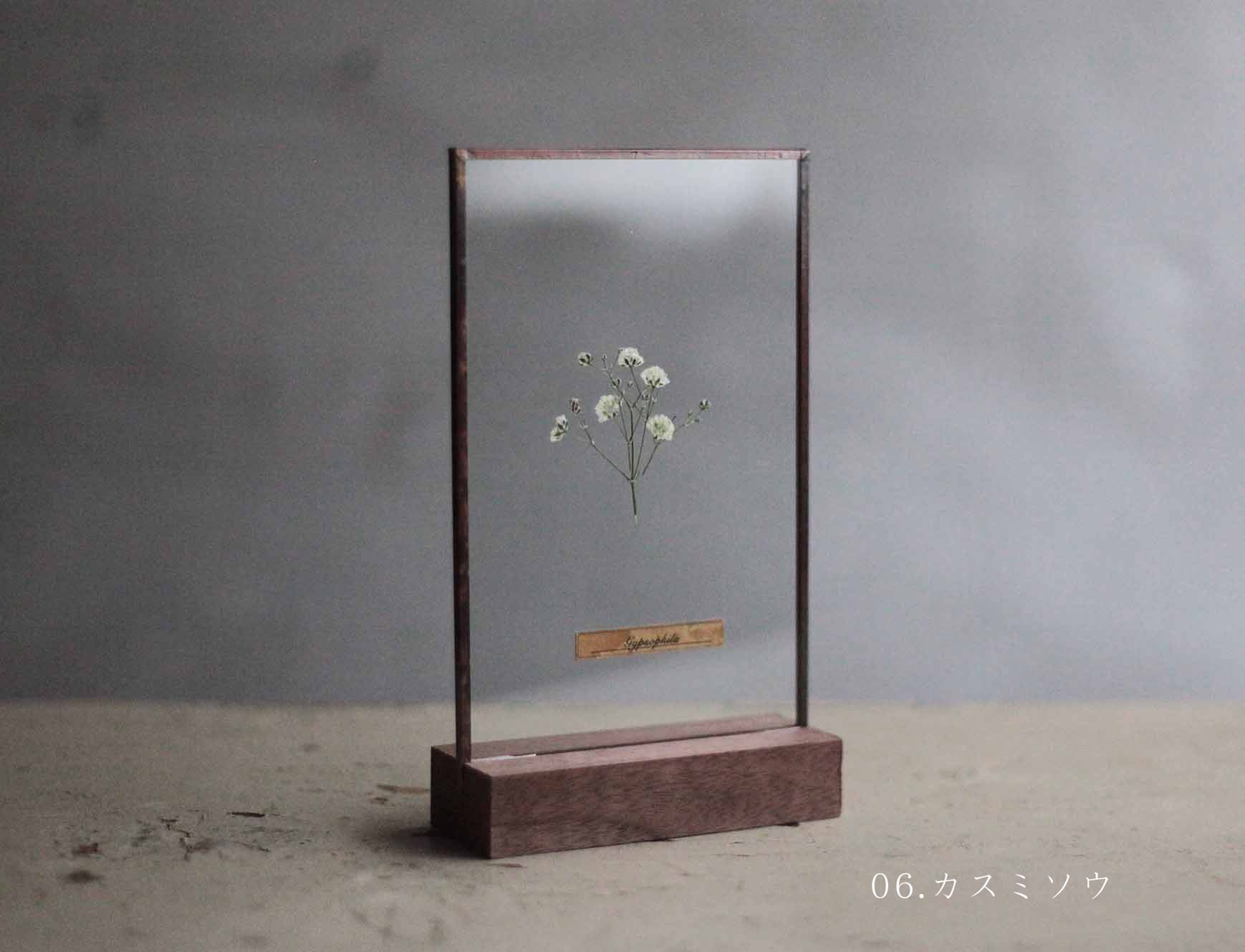 植物に限らず、苔や地衣類、海藻など自然物の一瞬をガラスで綴じた当店定番の作品のひとつです。
