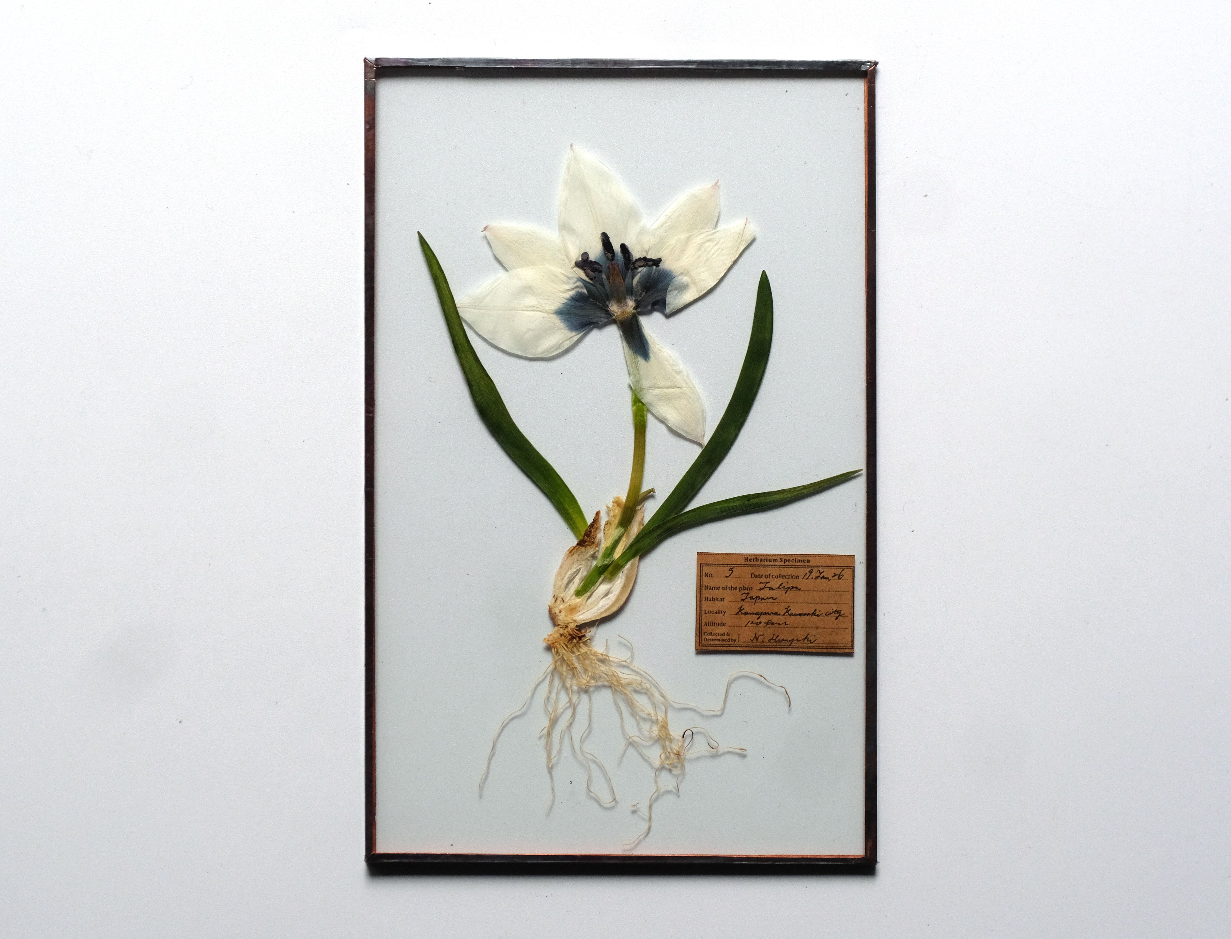 この季節ならではの球根をゆっくりと時間を掛けて押してガラスの標本に仕立てました。