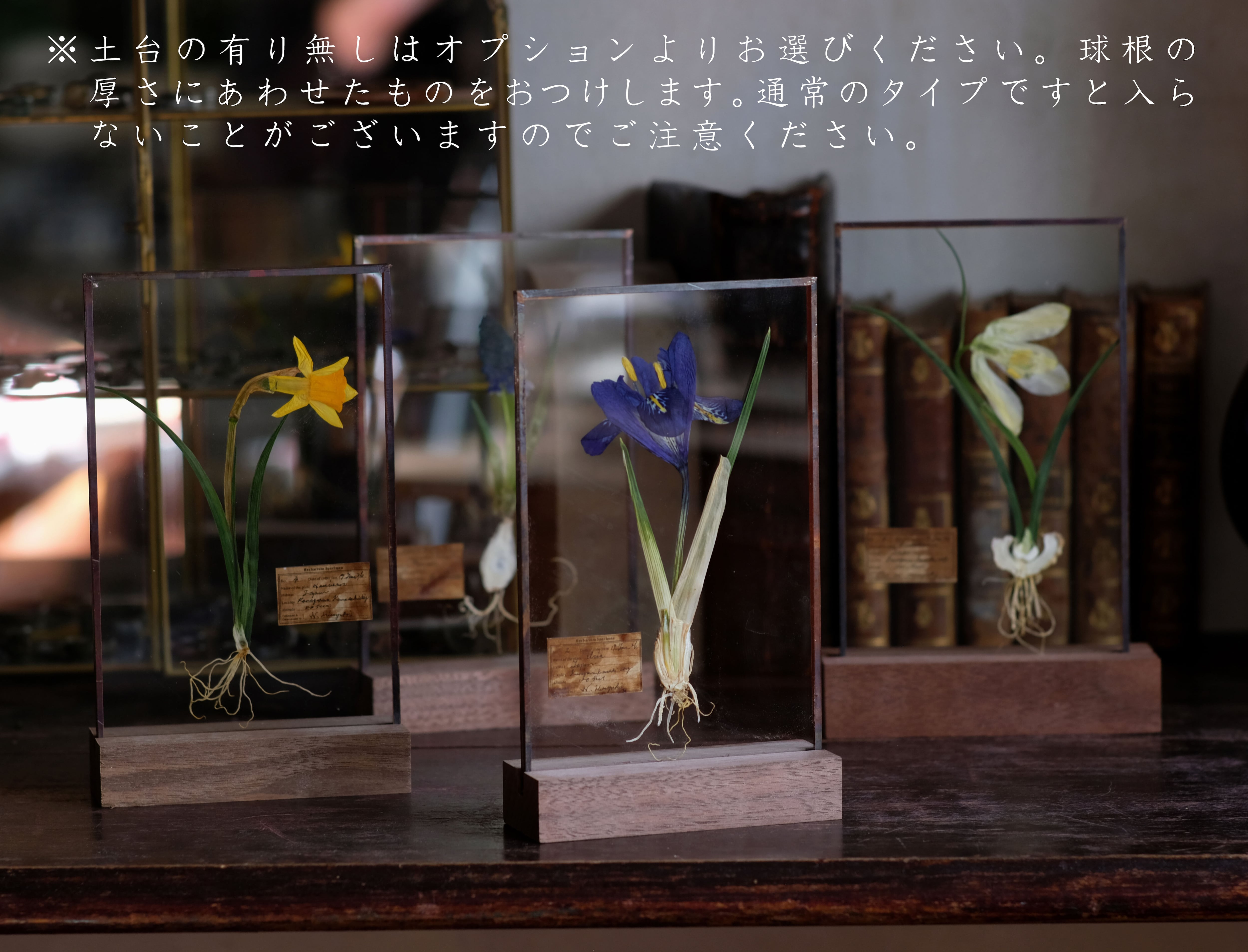 この季節ならではの球根をゆっくりと時間を掛けて押してガラスの標本に仕立てました。