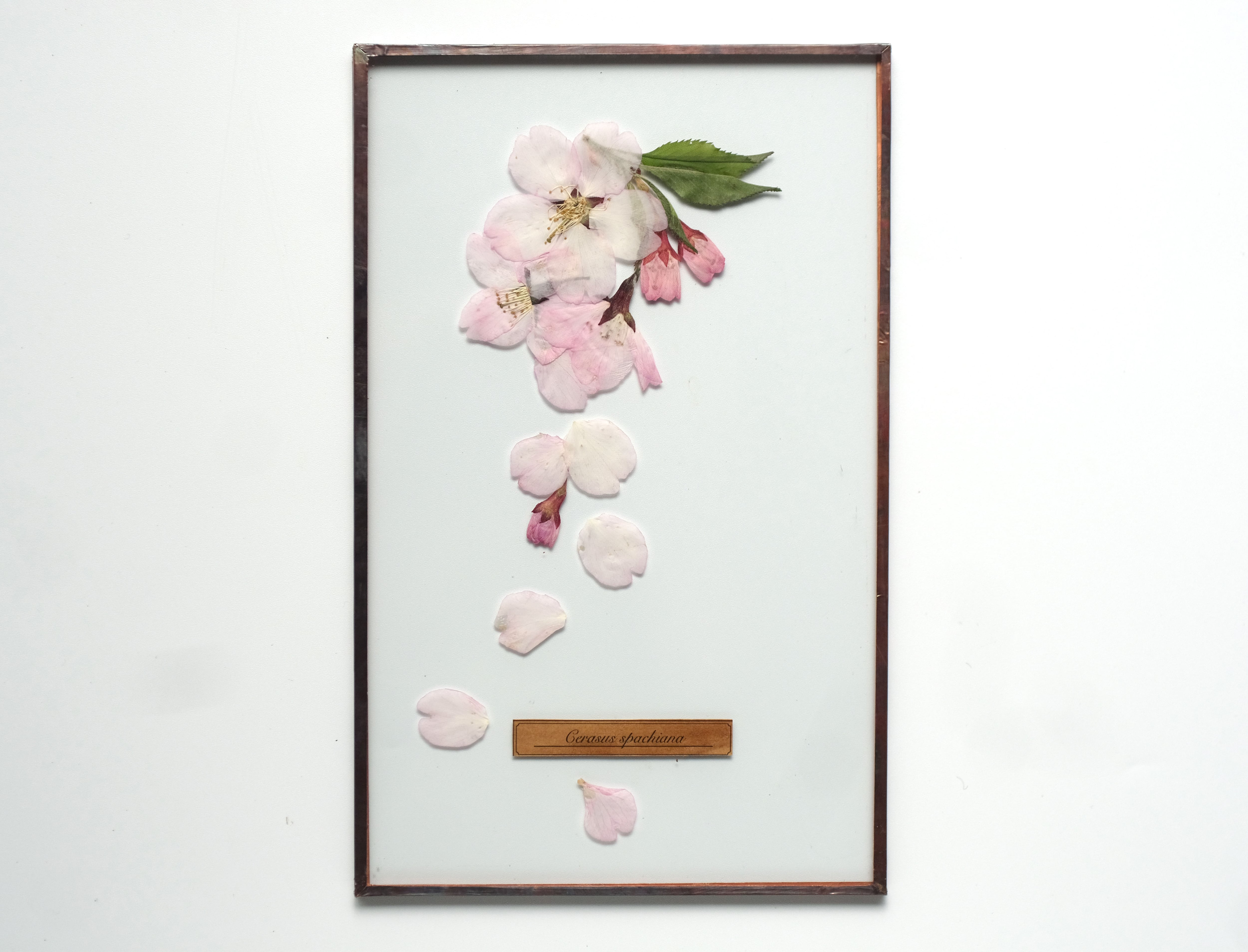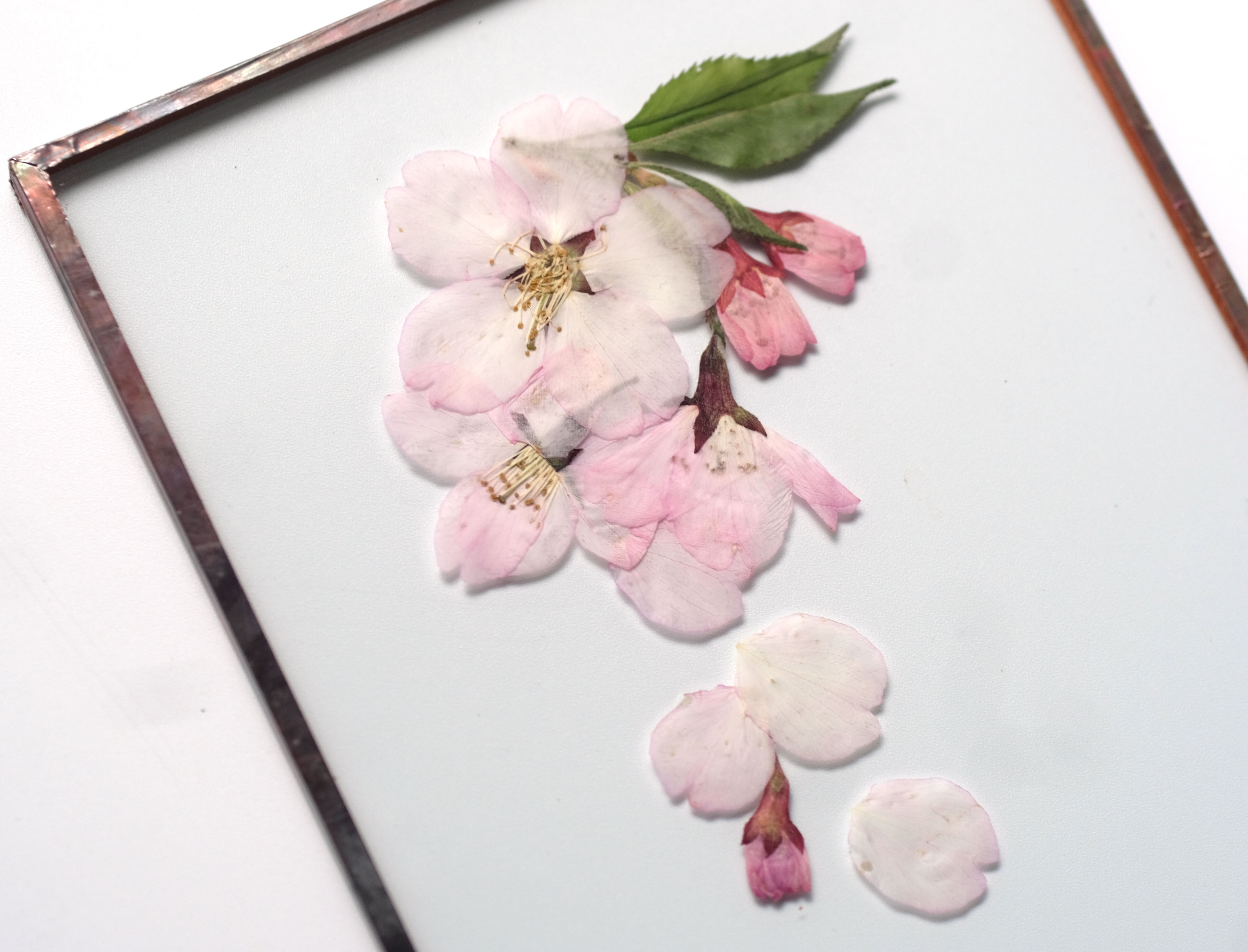 厳選された桜の花を丁寧に押して二枚の板硝子に閉じ込めました。