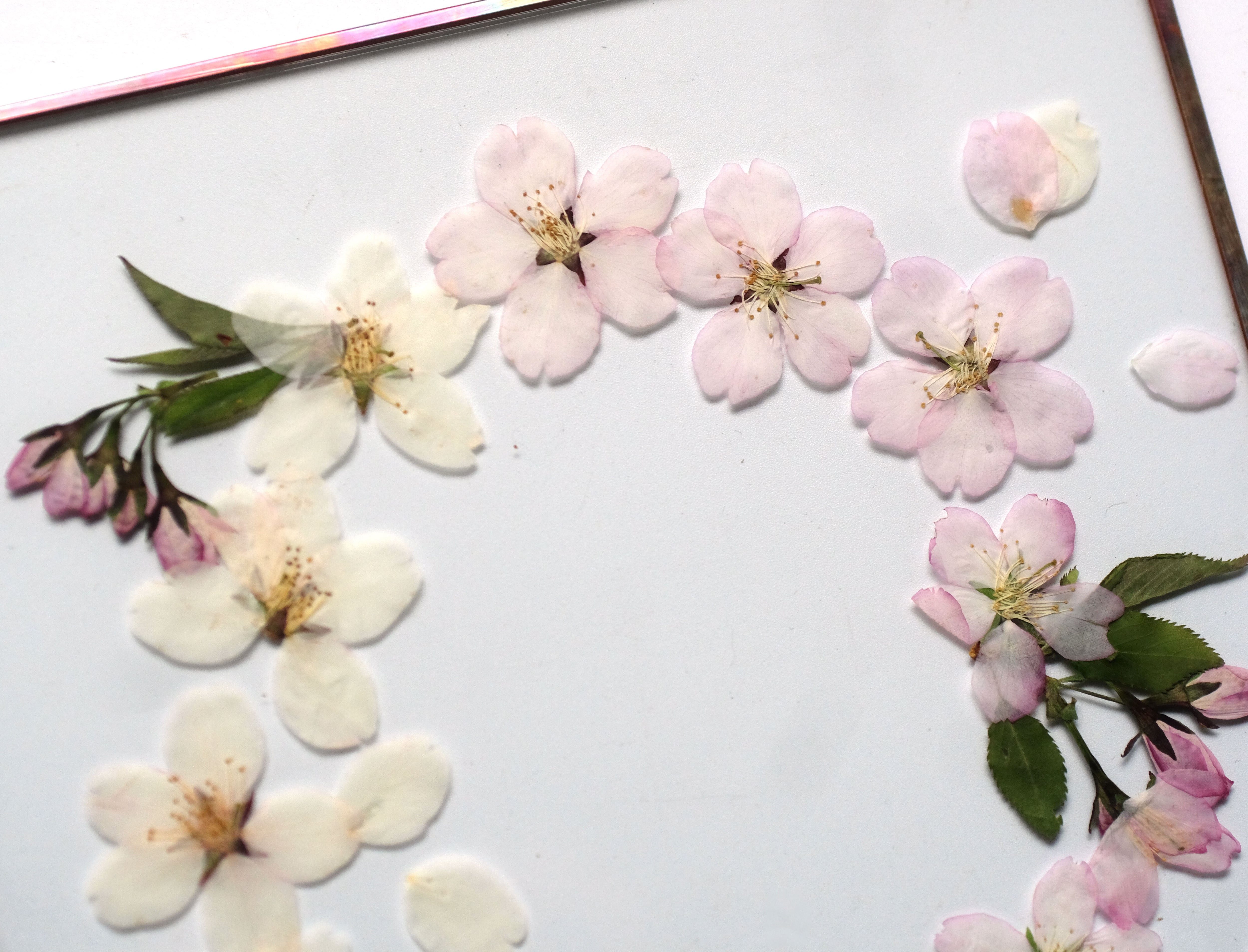 厳選された桜の花を丁寧に押して二枚の板硝子に閉じ込めました。