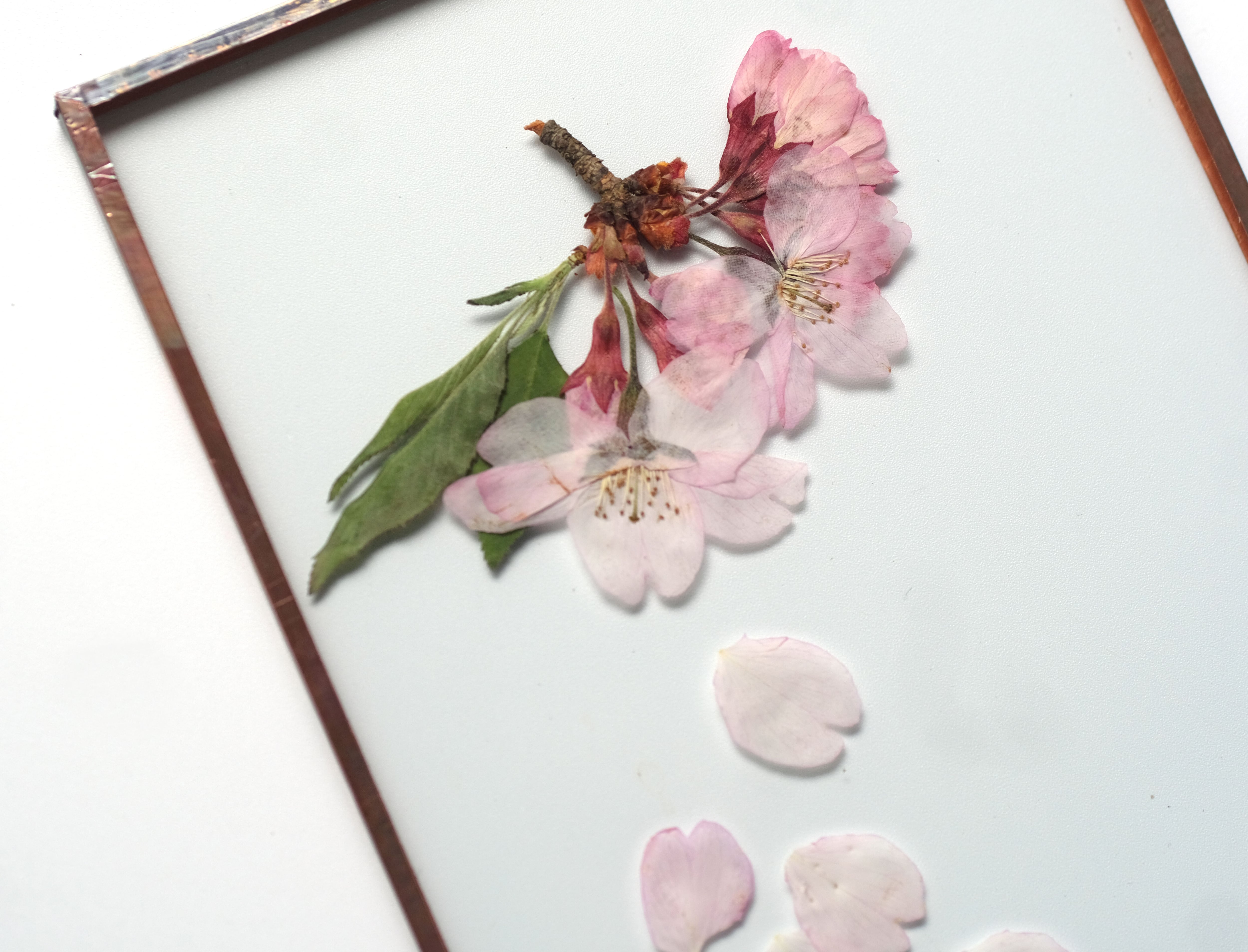 厳選された桜の花を丁寧に押して二枚の板硝子に閉じ込めました。