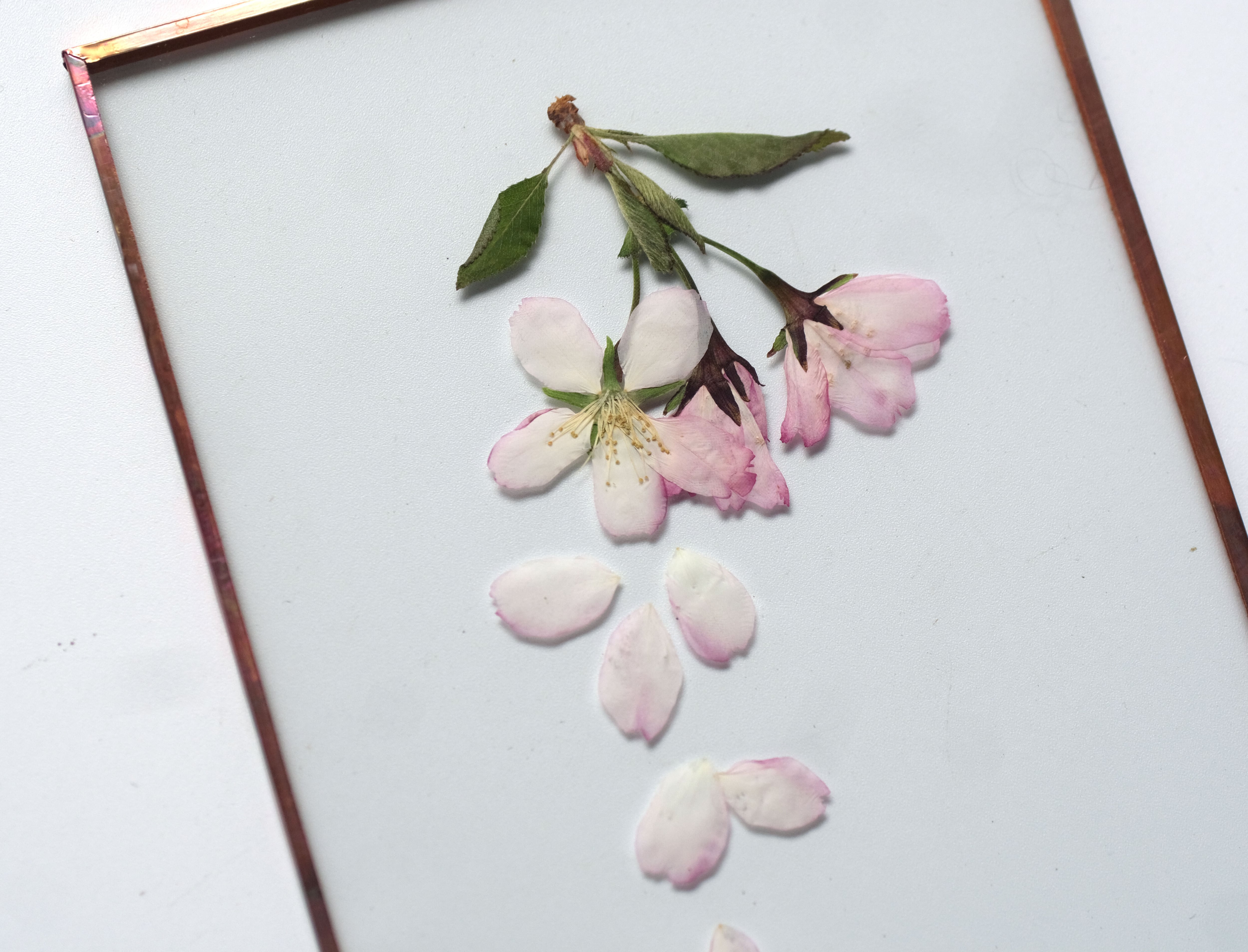 厳選された桜の花を丁寧に押して二枚の板硝子に閉じ込めました。