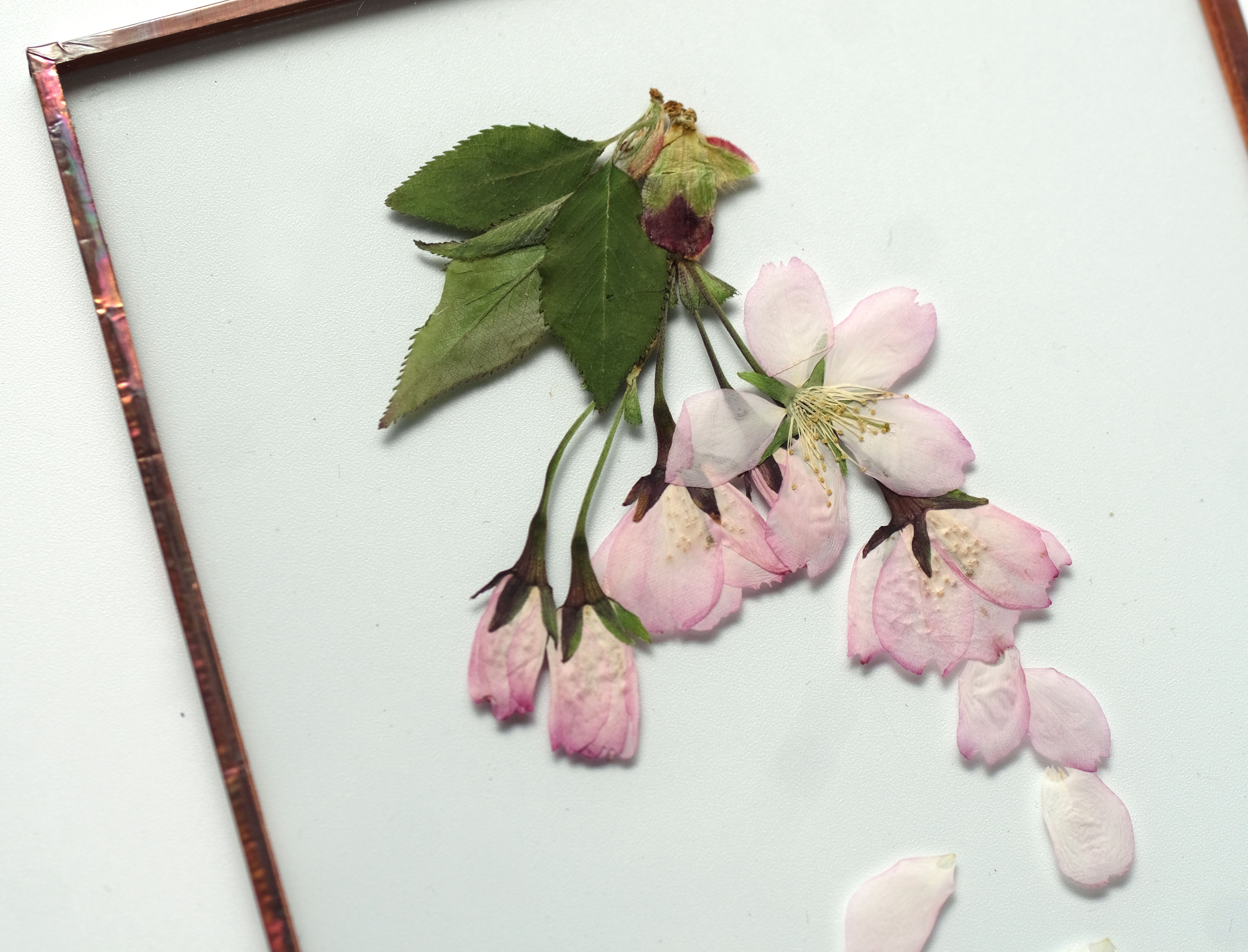 厳選された桜の花を丁寧に押して二枚の板硝子に閉じ込めました。