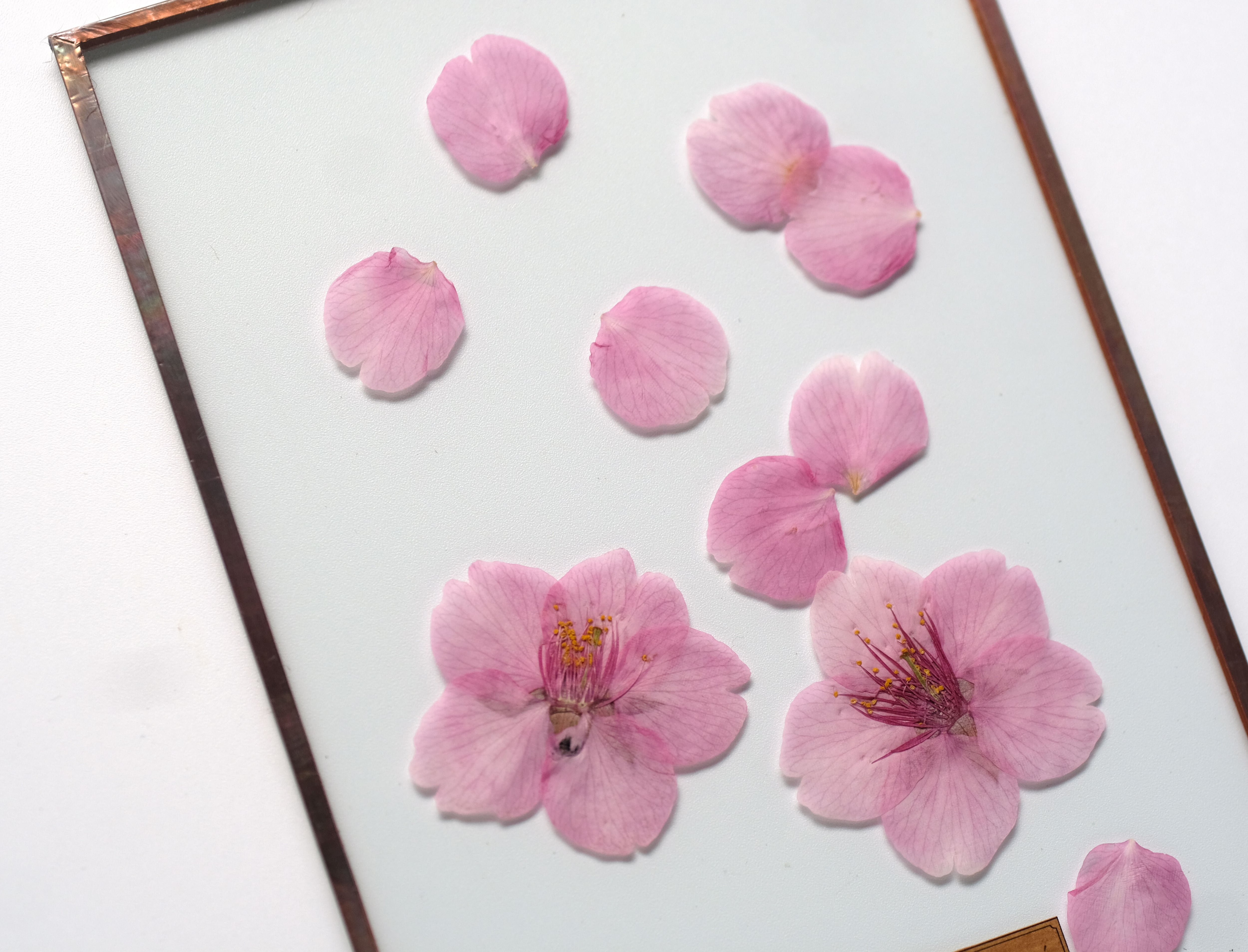 厳選された桜の花を丁寧に押して二枚の板硝子に閉じ込めました。