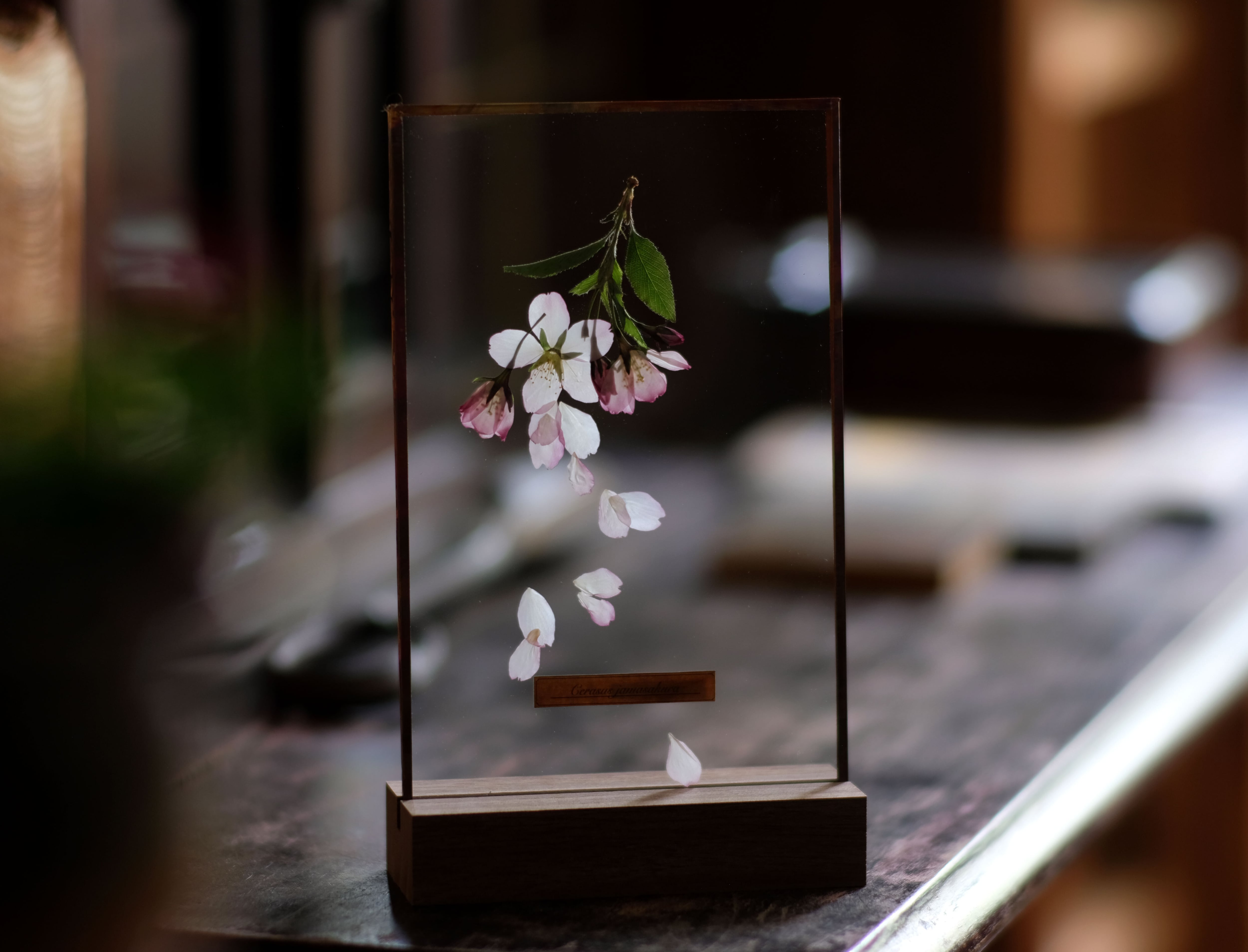 桜の儚い美しさをを閉じ込めたガラス標本。