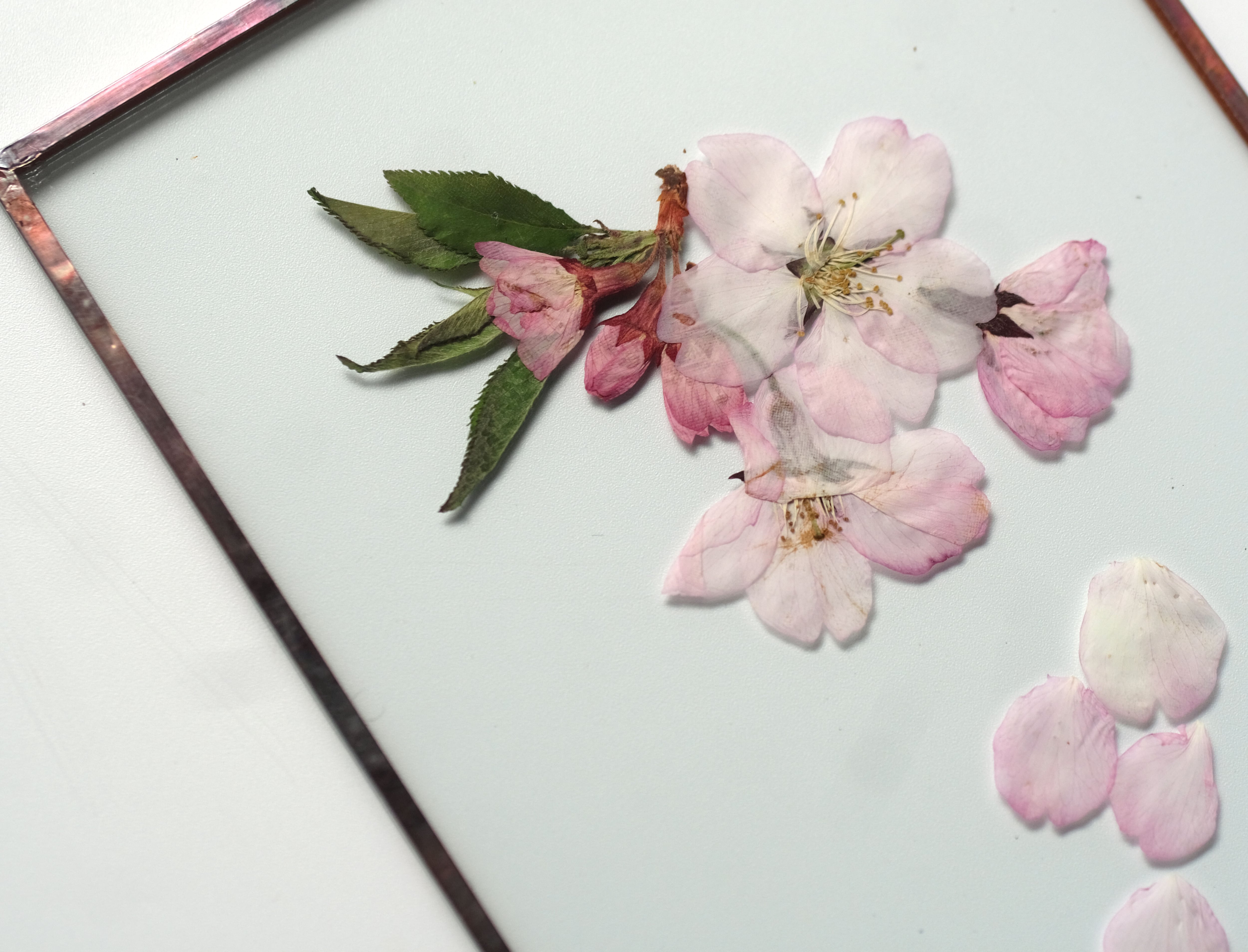厳選された桜の花を丁寧に押して二枚の板硝子に閉じ込めました。