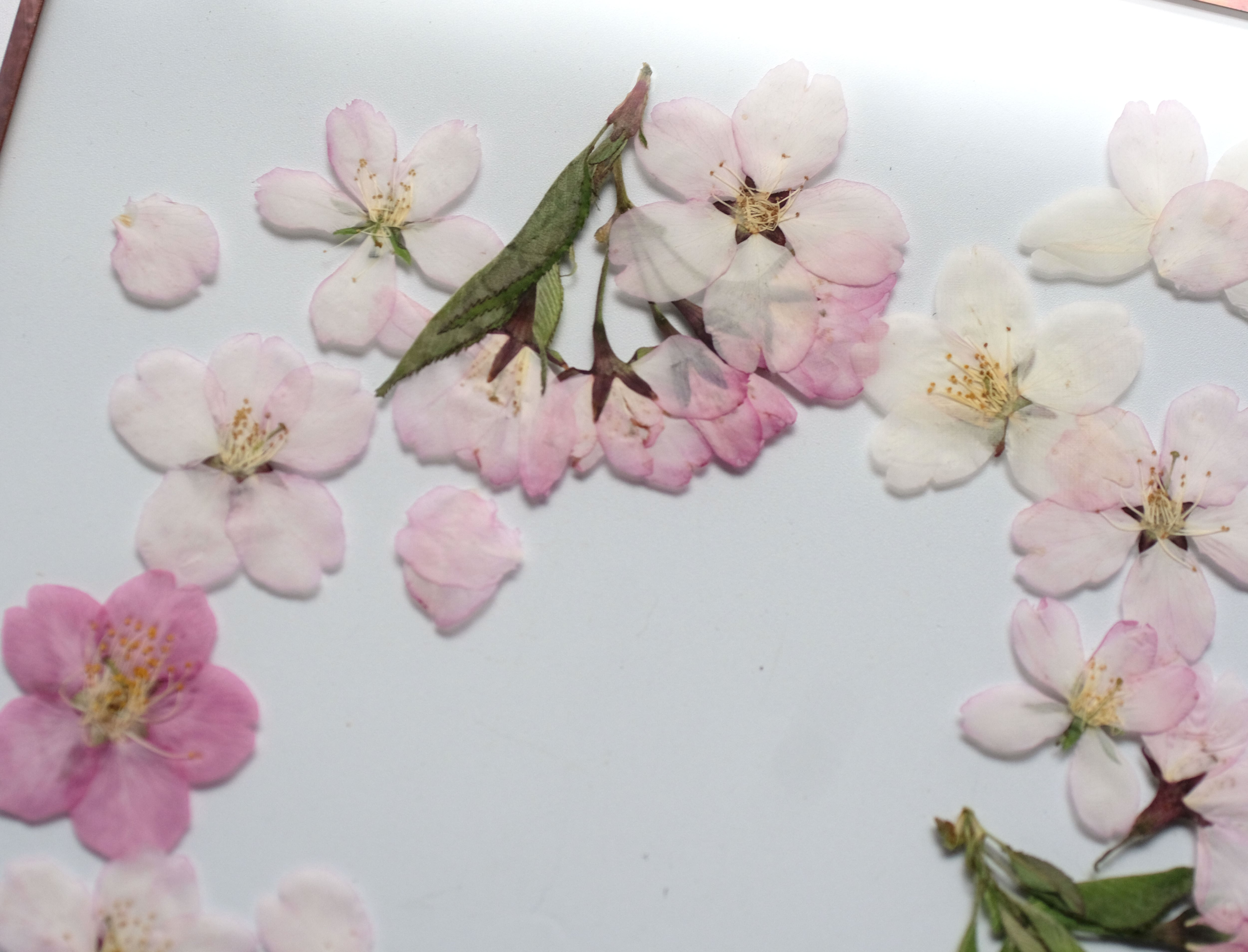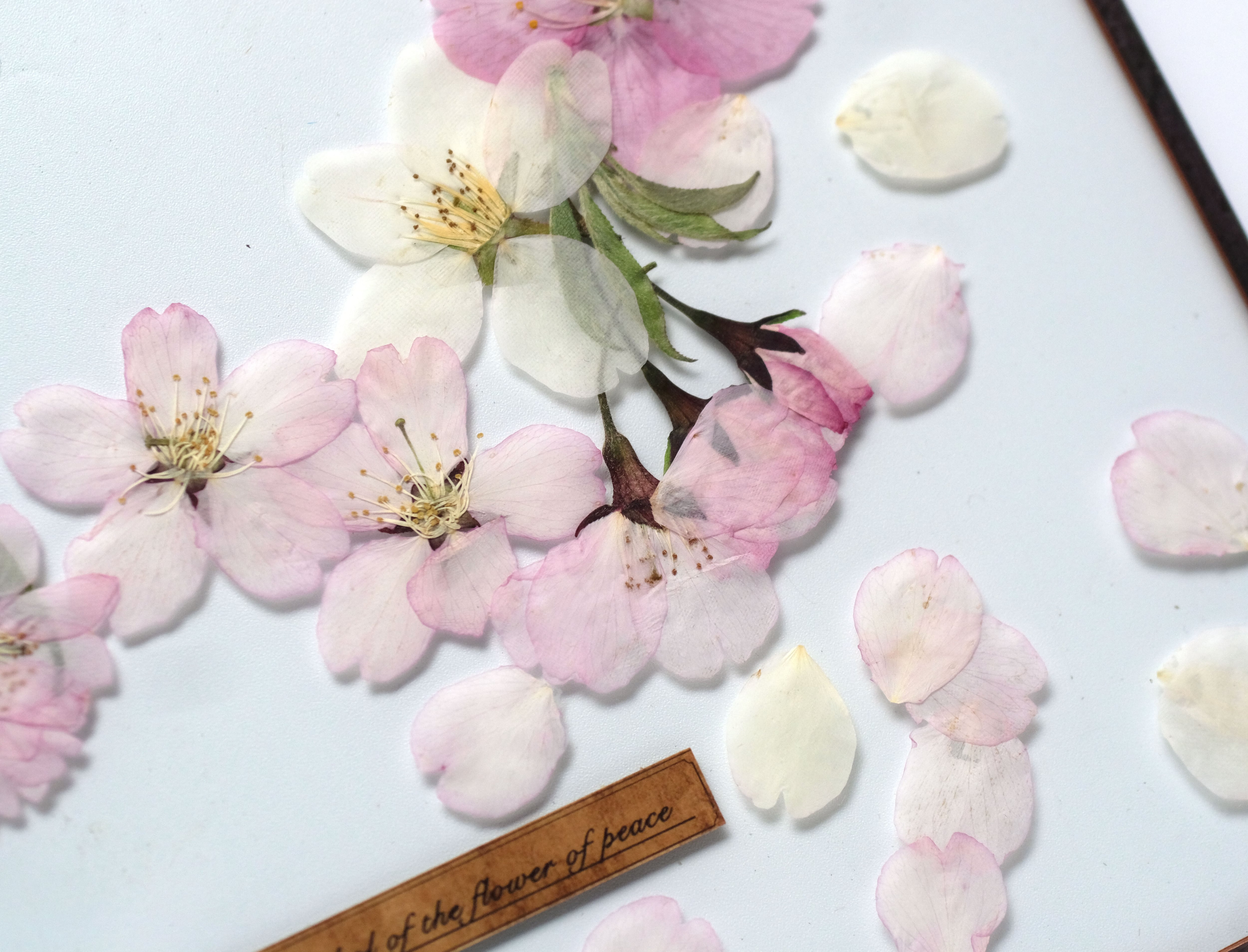 厳選された桜の花を丁寧に押して二枚の板硝子に閉じ込めました。