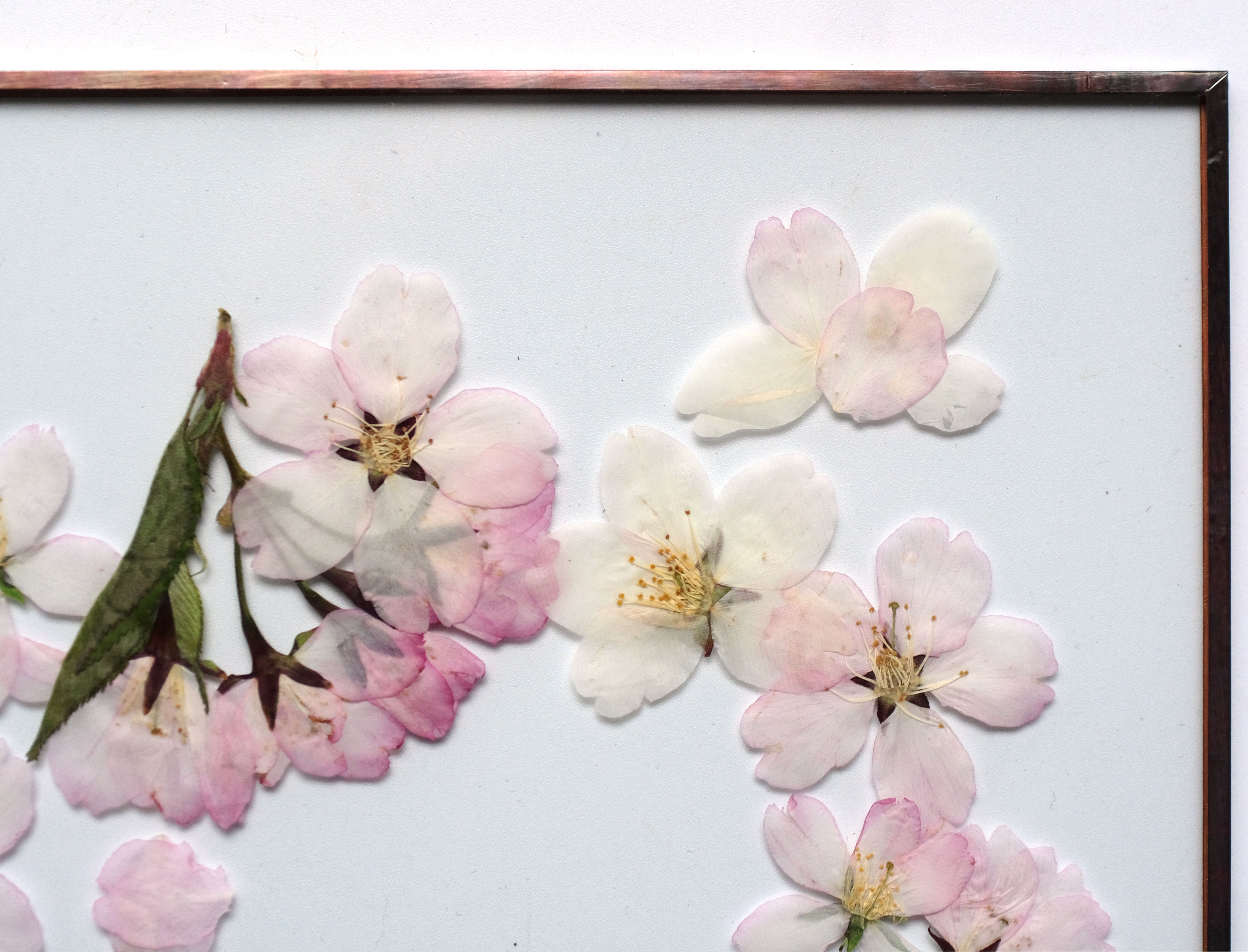 *こちらの商品は本物の植物を使って製作しておりますので、押し花・花材の褪色は避けられません。自然物ならではの特性となりますので、予めご了承ください。