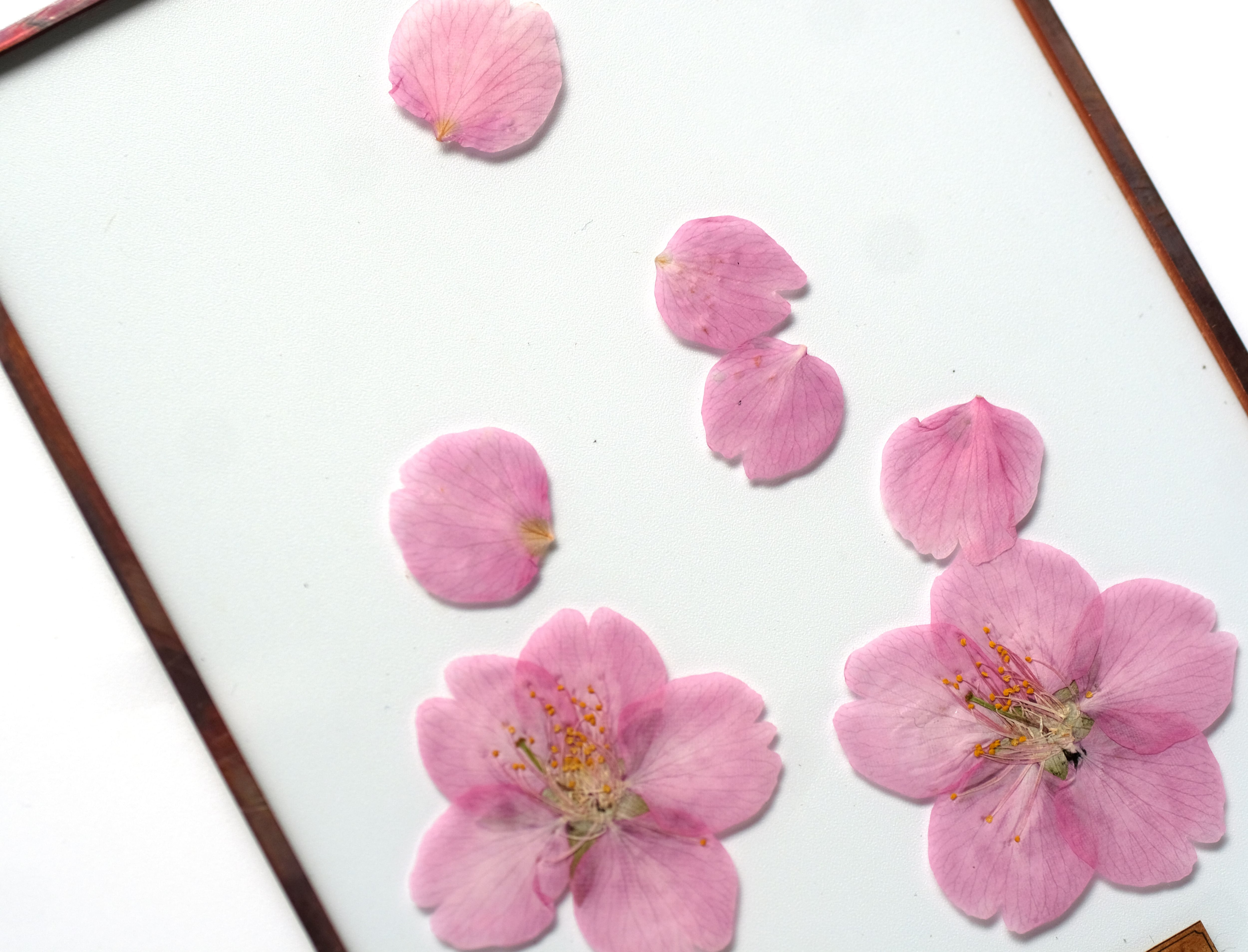 厳選された桜の花を丁寧に押して二枚の板硝子に閉じ込めました。